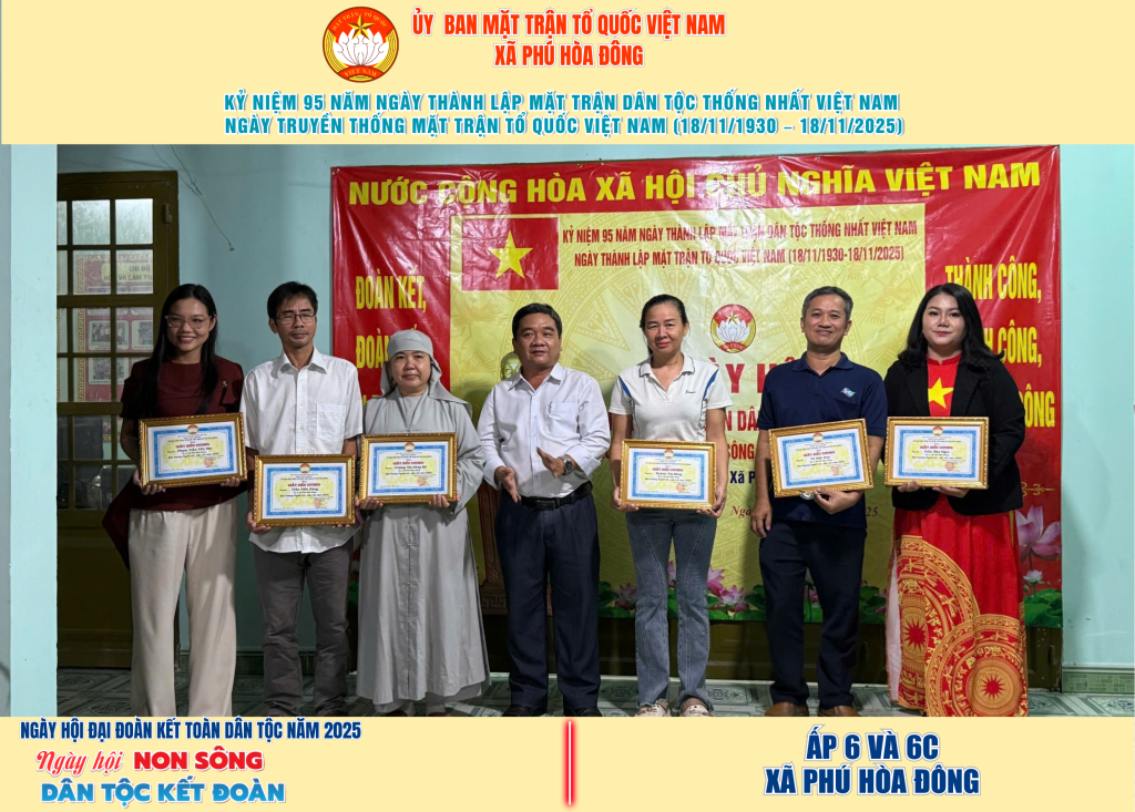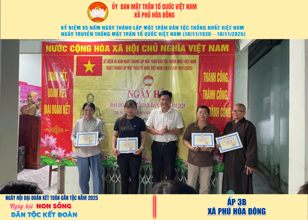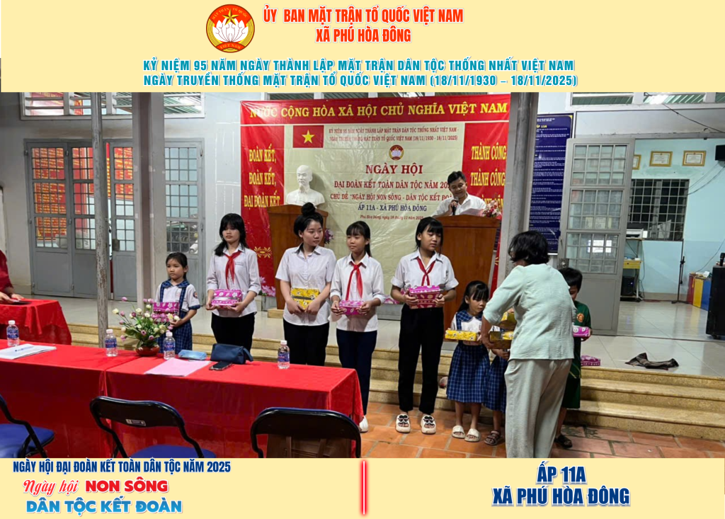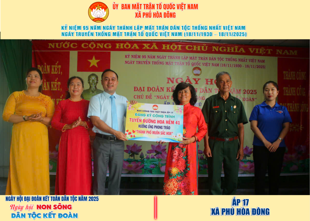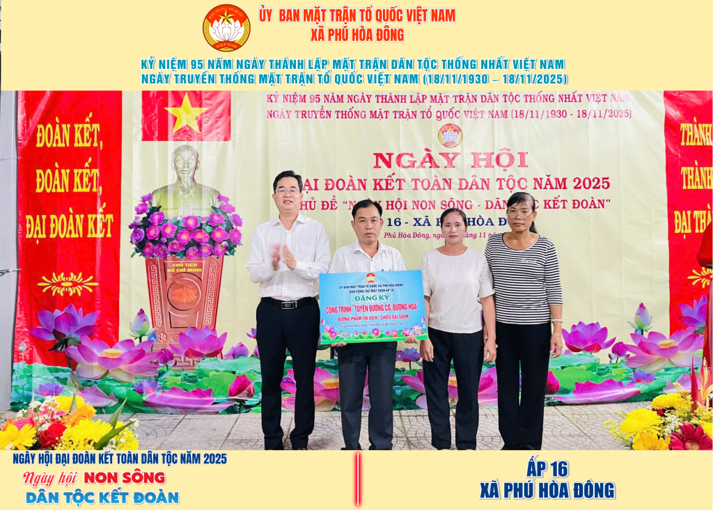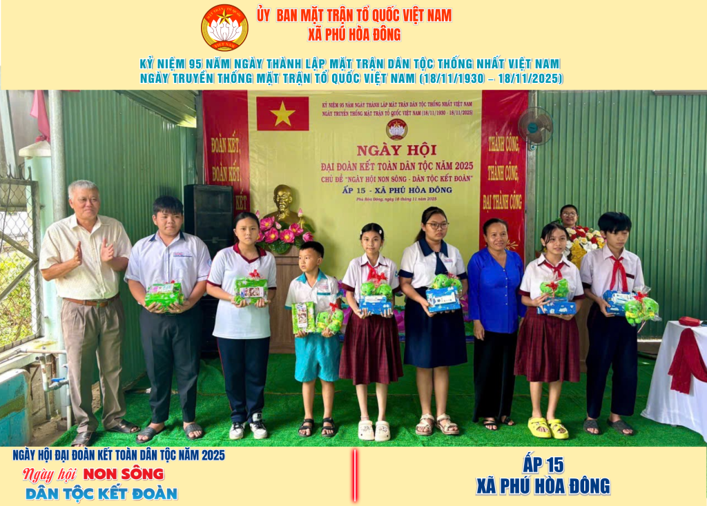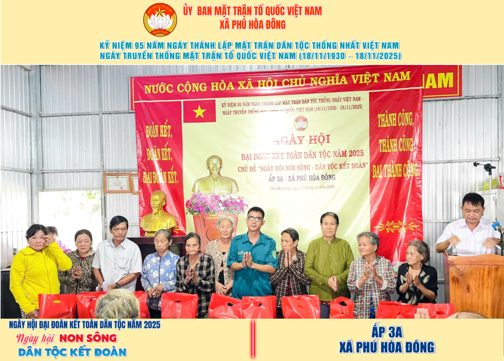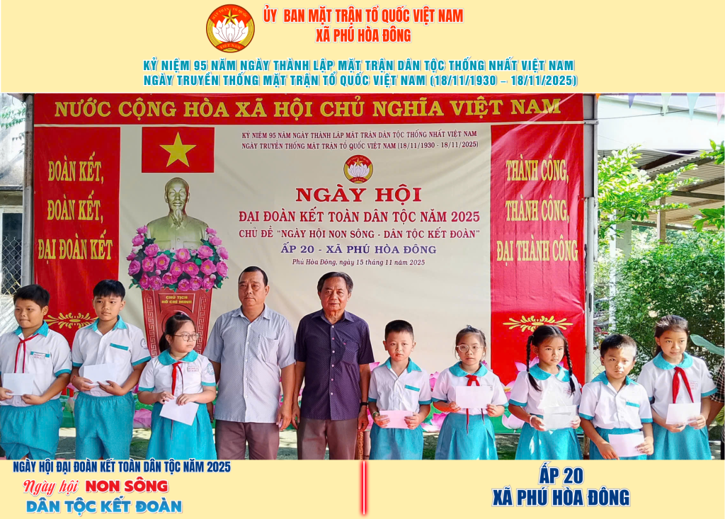 Từ ngày 08/11 đến 18/11/2025, 57/57 ấp trên địa bàn xã Phú Hòa Đông đã tổ chức thành công Ngày hội Đại đoàn kết toàn dân tộc năm 2025, thu hút đông đảo Nhân dân tham dự, tạo không khí vui tươi, đầm ấm và đoàn kết.