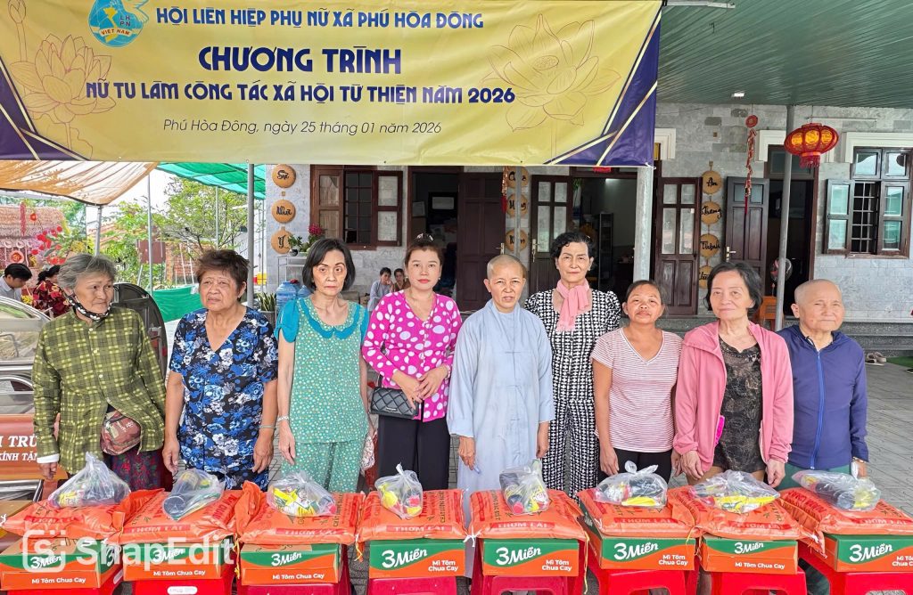 Với tinh thần yêu thương, sẻ chia và trách nhiệm vì cộng đồng, Hội Liên hiệp Phụ nữ xã Phú Hòa Đông đã phối hợp cùng Sư cô Diệu Hạnh ấp 5 tổ chức chương trình “Nữ tu làm công tác xã hội từ thiện” năm 2026, nhằm kịp thời chăm lo, hỗ trợ hội viên, phụ nữ có hoàn cảnh khó khăn trên địa bàn xã.