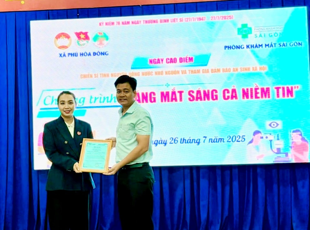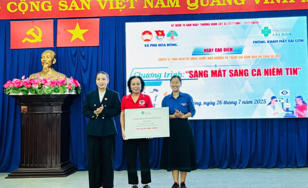 Trong khuôn khổ ngày hoạt động cao điểm chiến sĩ tình nguyện uống nước nhớ nguồn tham gia đảm bảo an sinh xã hội, sáng ngày 26/7/2025, Ủy ban Mặt trận Tổ quốc Việt Nam – Đoàn Thanh niên – Hội người cao tuổi xã Phú Hòa Đông phối hợp với phòng khám Mắt Sài Gòn Củ Chi tổ chức chương trình “Sáng mắt sáng cả niềm tin” với sự tham gia của hơn 150 người dân, đoàn viên, thanh niên trên địa bàn xã. Qua đó đã tư vấn, khám mắt, phát thuốc miễn phí và trao tặng hơn 100 phần quà đến người dân.