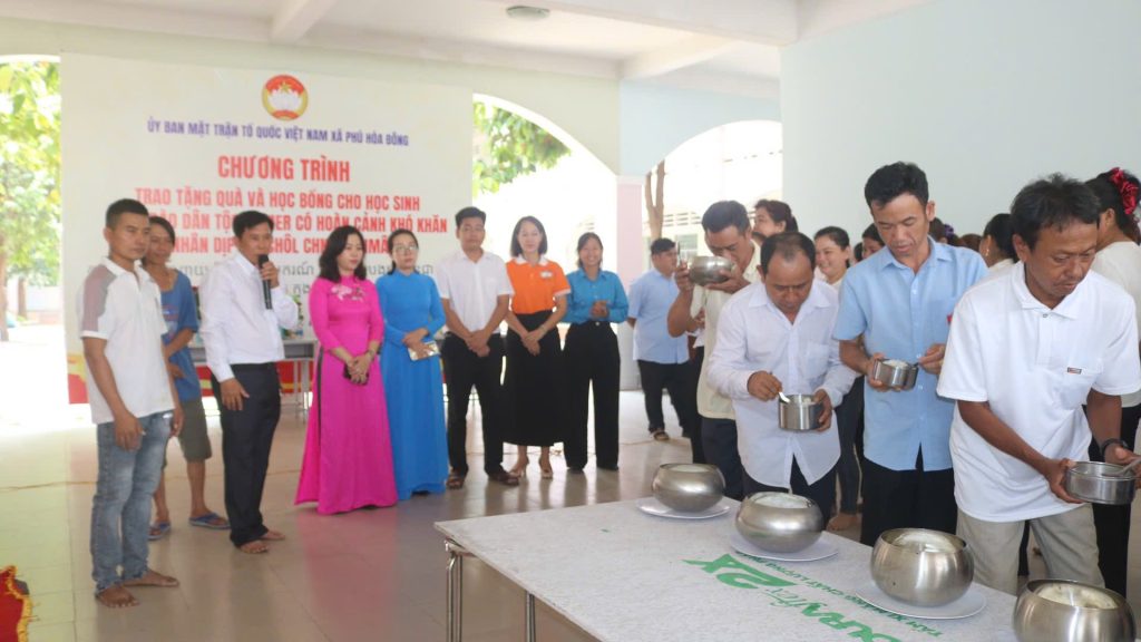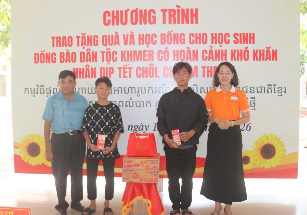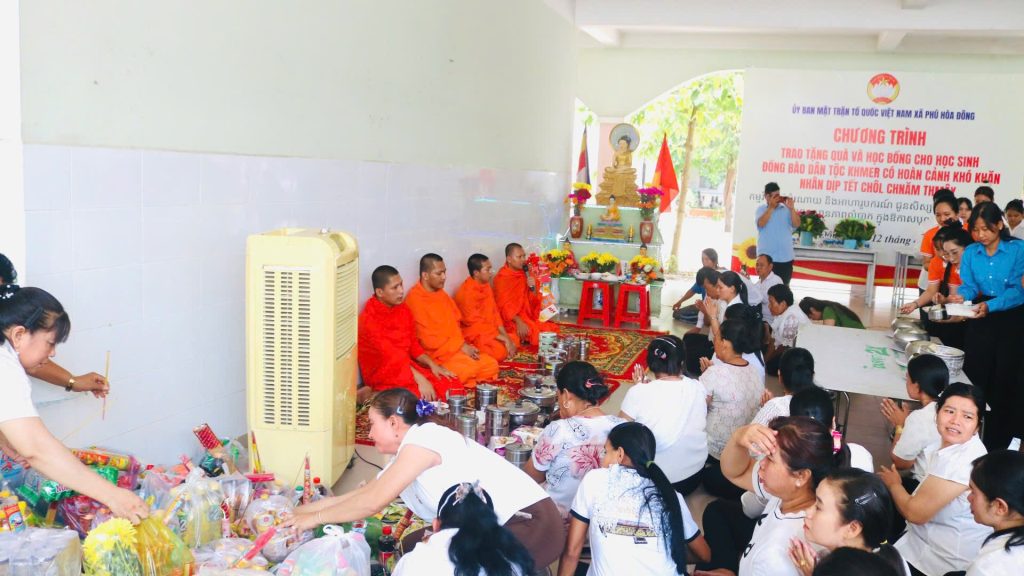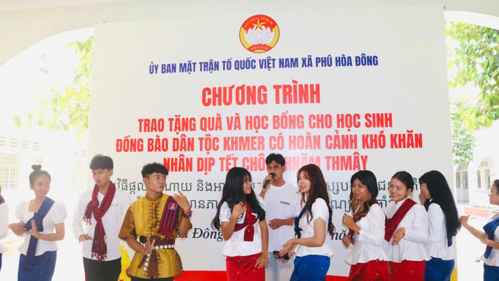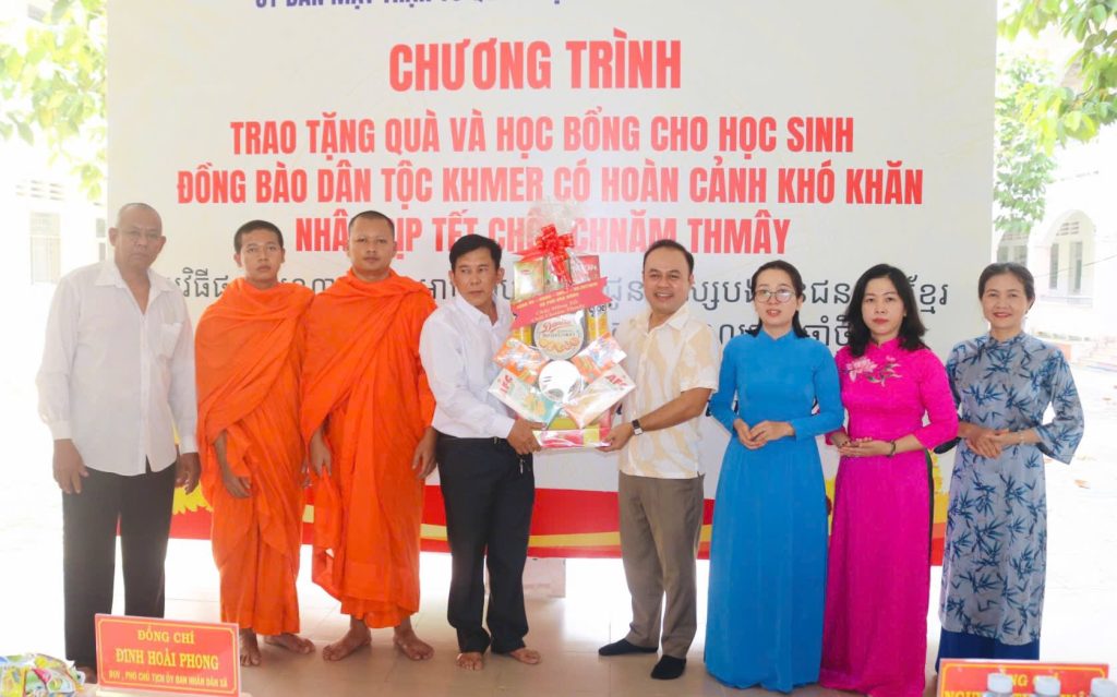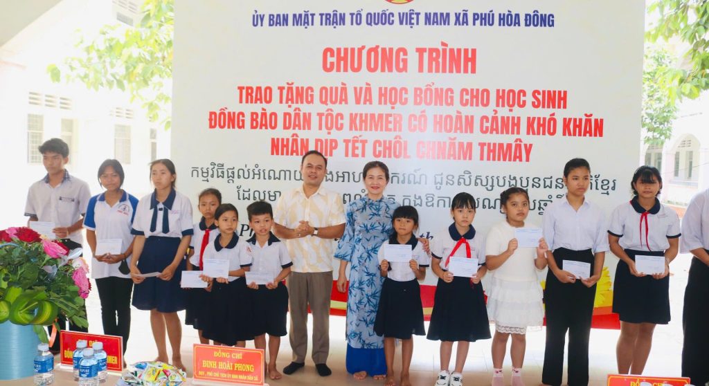 Trong khuôn khổ chương trình, Đảng uỷ – Hội đồng nhân dân – Uỷ ban nhân dân – Uỷ ban MTTQ Việt Nam xã đã gửi lời chúc mừng đến đồng bào Khmer đang sinh sống trên địa bàn xã và trao tặng 30 phần quà, học bổng cho các em học sinh đồng bào. Trong đó có 10 phần do Tu viện Linh Thứu hỗ trợ, đồng thời Ban Thường trực Uỷ ban Mặt trận Tổ quốc Việt Nam xã cũng đã trao 2 suất học bổng mỗi suất 1.000.000 đồng và hỗ trợ nhu yếu phẩm hàng tháng cho 2 em học sinh mồ côi cha, hoàn cảnh khó khăn do Đại Đức Thích Huệ Thuận ấp Phú Hiệp 2 đồng hành thực hiện mô hình “ Tiếp bước cùng em đến trường” .