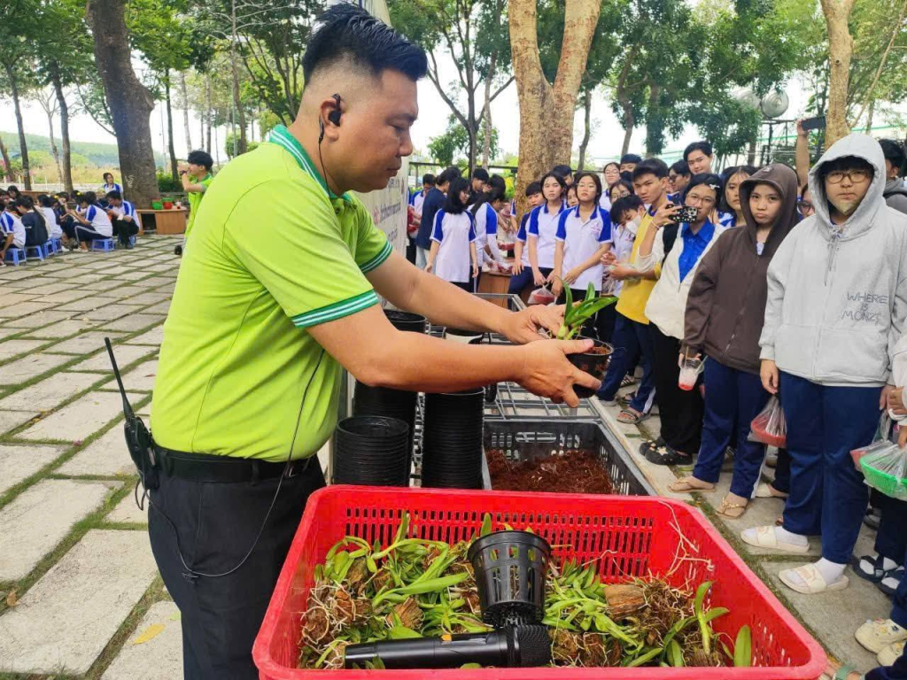 Trong chuyến đi này, các bạn học sinh được tìm hiểu các quy trình nuôi trồng chăm sóc cây theo các công nghệ tiên tiến, nghe thuyết trình về quy trình nuôi cấy mô và được thực hành trồng lan với rau mầm