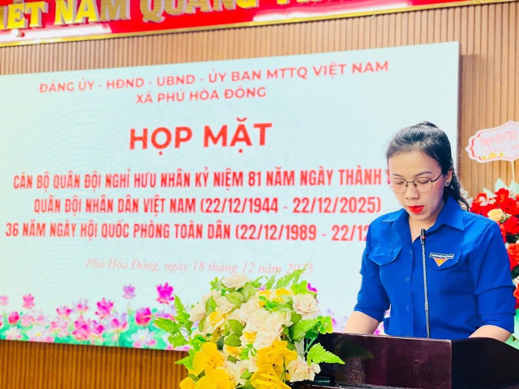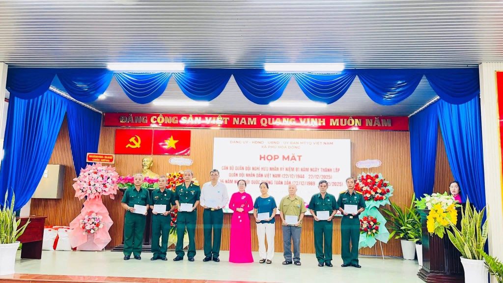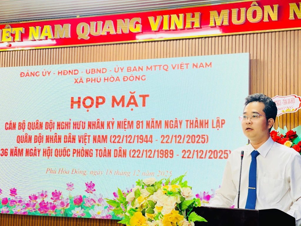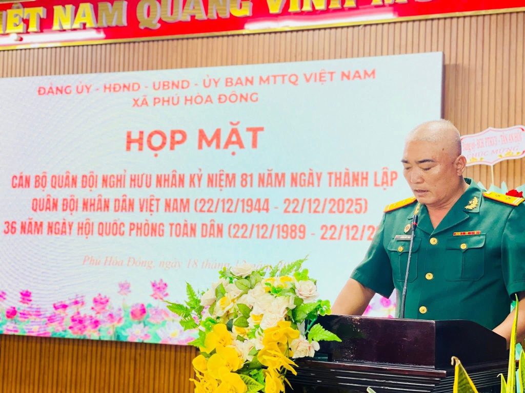 Chiều ngày 18/12/2025, Đảng ủy – Hội đồng nhân dân – Ủy ban nhân dân – Ủy ban Mặt trận Tổ quốc Việt Nam xã Phú Hoà Đông, TP. Hồ Chí Minh tổ chức Họp mặt kỷ niệm 81 năm Ngày thành lập Quân đội Nhân dân Việt Nam (22/12/1944 – 22/12/2025) và 36 năm Ngày hội Quốc phòng toàn dân (22/12/1989 – 22/12/2025).