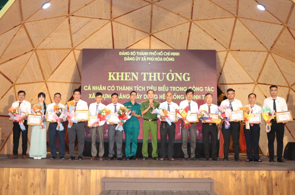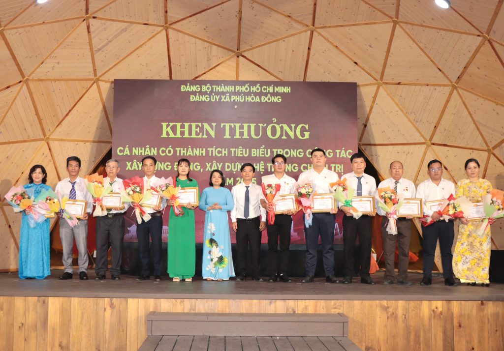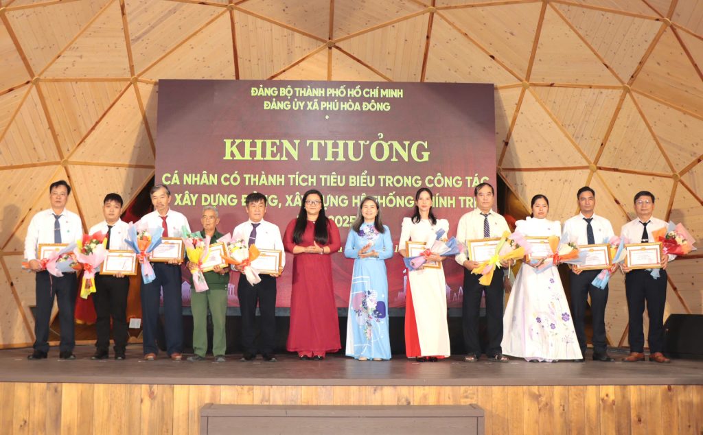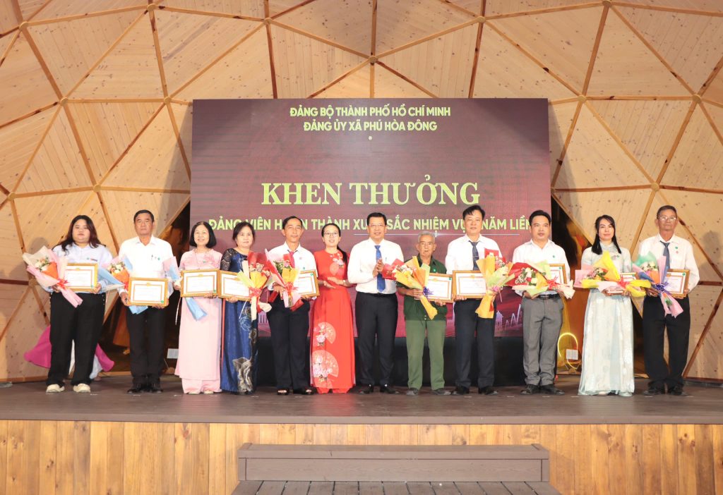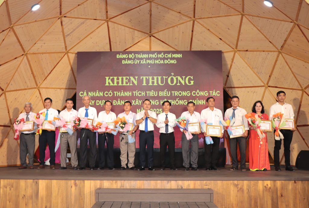 Dịp này, Đảng ủy xã Phú Hòa Đông đã khen thưởng 14 tổ chức đảng trực thuộc, 05 tập thể lãnh đạo quản lý và 228 đảng viên đạt danh hiệu “Hoàn thành xuất sắc nhiệm vụ” năm 2025; đồng thời khen thưởng 11 đảng viên “Hoàn thành xuất sắc nhiệm vụ” 5 năm liền (2021 – 2025), qua đó kịp thời ghi nhận, biểu dương và động viên những đóng góp tích cực của các tập thể, cá nhân trong thực hiện nhiệm vụ chính trị tại địa phương.