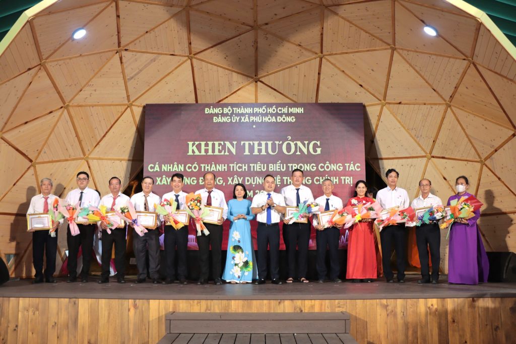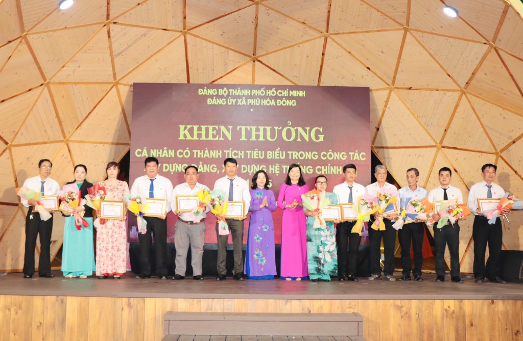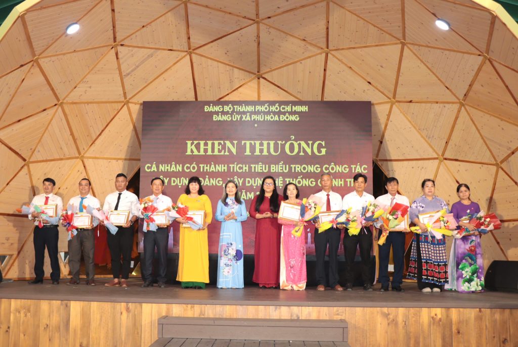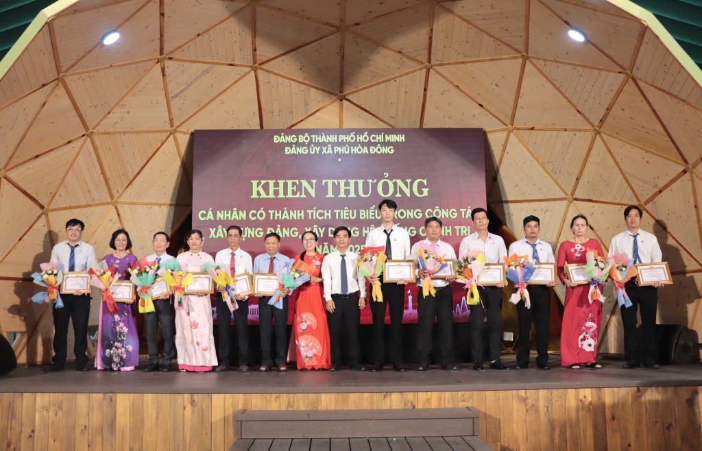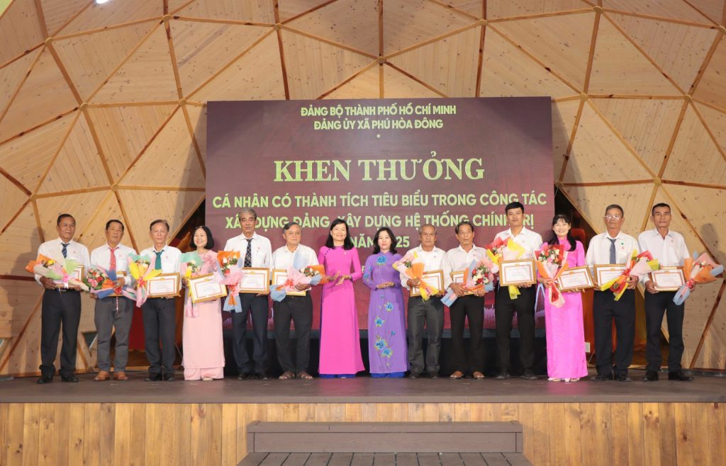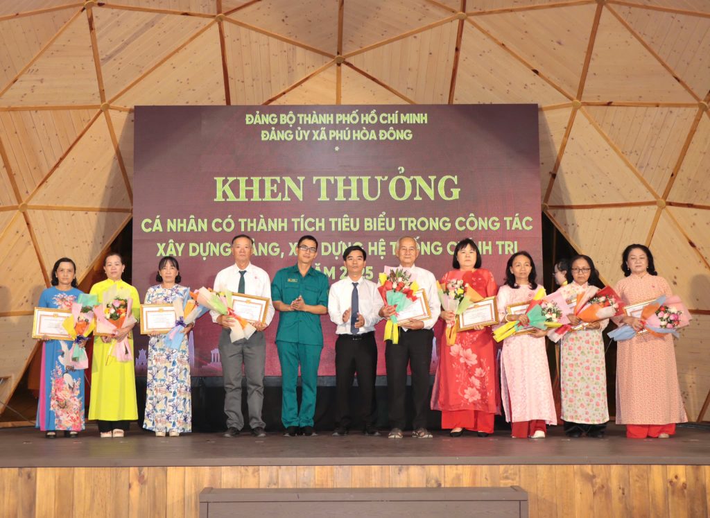Dịp này, Đảng ủy xã Phú Hòa Đông đã khen thưởng 14 tổ chức đảng trực thuộc, 05 tập thể lãnh đạo quản lý và 228 đảng viên đạt danh hiệu “Hoàn thành xuất sắc nhiệm vụ” năm 2025; đồng thời khen thưởng 11 đảng viên “Hoàn thành xuất sắc nhiệm vụ” 5 năm liền (2021 – 2025), qua đó kịp thời ghi nhận, biểu dương và động viên những đóng góp tích cực của các tập thể, cá nhân trong thực hiện nhiệm vụ chính trị tại địa phương.