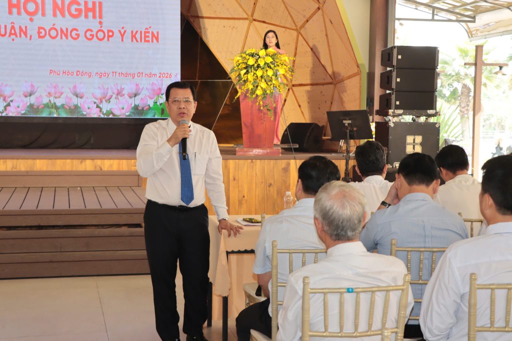 Sáng ngày 11 tháng 01 năm 2026, Đảng ủy xã Phú Hòa Đông tổ chức Hội nghị Tổng kết công tác xây dựng Đảng, xây dựng hệ thống chính trị và họp mặt đảng viên sinh hoạt nơi cư trú theo Quy định số 213-QĐ/TW ngày 02/01/2020 của Bộ Chính trị trên địa bàn xã năm 2025.