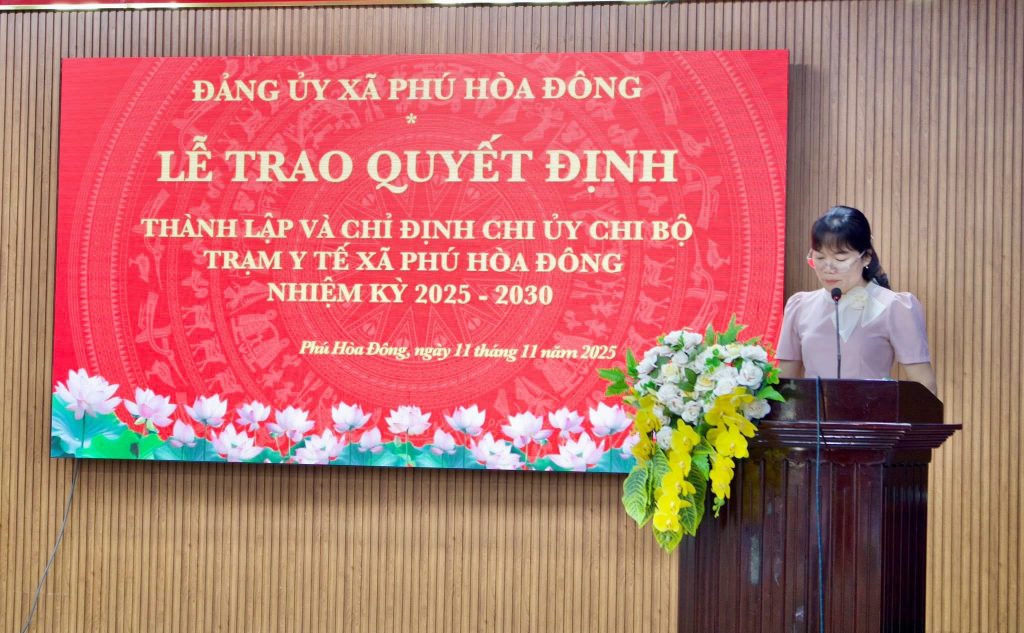 Chiều ngày 11/11/2025, Đảng ủy xã Phú Hòa Đông đã tổ chức Lễ trao Quyết định thành lập Chi bộ Trạm y tế xã Phú Hòa Đông và chỉ định Chi ủy nhiệm kỳ 2025 – 2030.