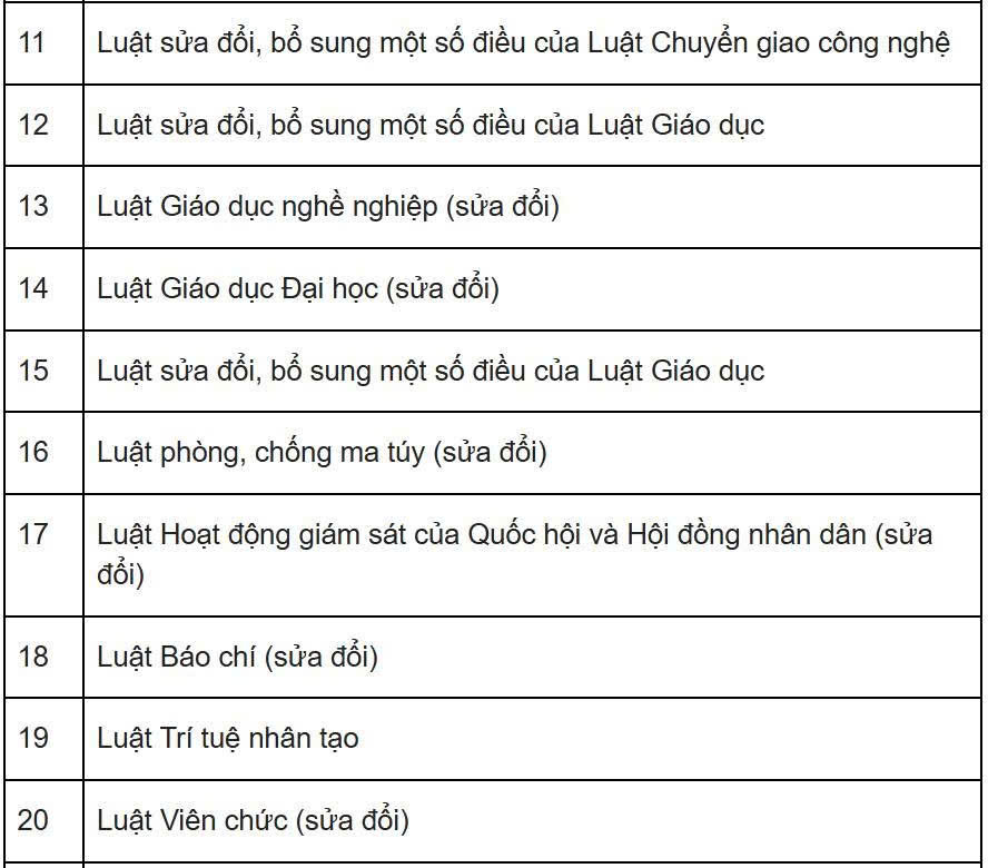 Trang chủ » Dân chủ - pháp luật » Danh sách 34 Luật, 5 Nghị quyết được Quốc hội thông qua ngày 10/12/2025