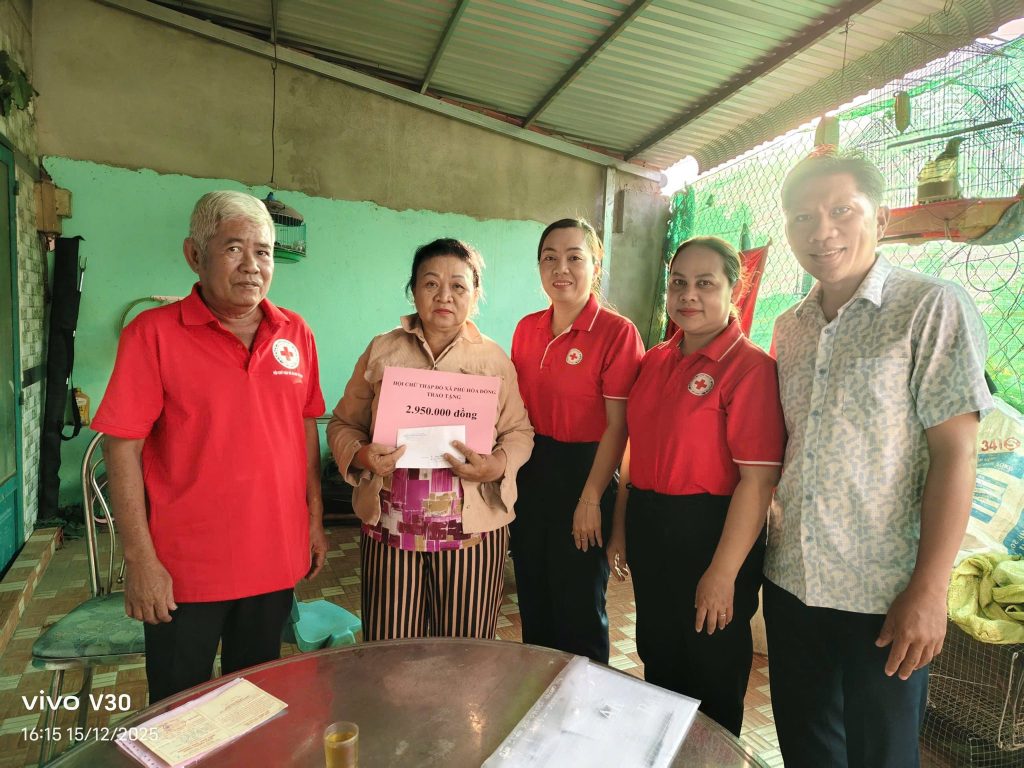 Thực hiện ý kiến chỉ đạo của Ban Thường trực Ủy ban Mặt trận Tổ quốc Việt Nam xã Phú Hòa Đông về thực hiện mô hình “ Đồng hành cùng khu dân cư”. Sáng ngày 17/12/2025, Ban Thường vụ Hội Chữ thập đỏ xã phối hợp cùng Ban Nhân dân, chi hội Chữ thập đỏ ấp Cây Trâm 2 đã đến thăm hỏi và trao tặng số tiền 2.950.000 đồng cho hộ bà Pham Thị Tuyết Mai ngụ ấp Cây Trâm 2.