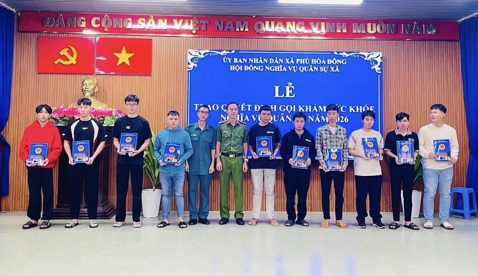 Sáng ngày 02 tháng 11 năm 2025, Hội đồng Nghĩa vụ quân sự xã Phú Hoà Đông, TP. Hồ Chí Minh tổ chức Lễ trao Quyết định gọi công dân khám sức khỏe nghĩa vụ quân sự năm 2026.