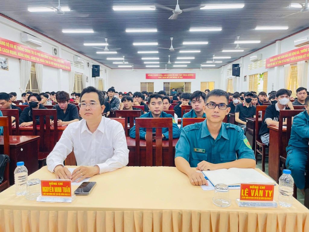 Tham dự buổi lễ có đồng chí đồng chí Nguyễn Minh Tuấn – Phó Bí thư Đảng ủy, Chủ tịch UBND, Chủ tịch Hội đồng NVQS xã; đồng chí Lê Văn Ty – Uỷ viên Ban thường vụ Đảng uỷ, Chỉ huy trưởng Ban CHQS xã, Phó chủ tịch thường trực Hội đồng NVQS xã; đồng chí Nguyễn Văn Tâm – Uỷ viên Ban thường vụ Đảng uỷ, Trưởng Công an, Phó chủ tịch Hội đồng NVQS xã và các đồng chí Uỷ viên trong Hội đồng nghĩa vụ quân sự xã, các ấp đội trưởng và cùng các công dân đủ điều kiện khám sức khoẻ nghĩa nghĩa vụ quân sự năm 2026.