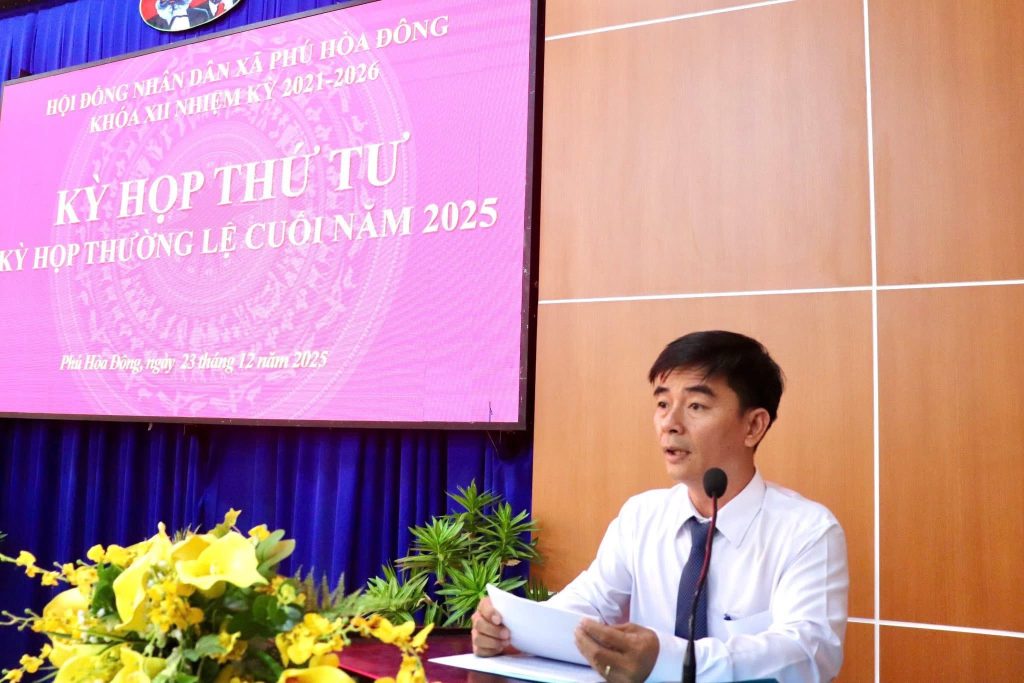 Sáng ngày 23 tháng 12 năm 2025, Hội đồng nhân dân xã Phú Hòa Đông khóa XII, nhiệm kỳ 2021 – 2026 đã tổ chức kỳ họp thứ tư. Ông Nguyễn Văn Nghĩa, Bí thư Đảng ủy, Chủ tịch HĐND xã chủ trì kỳ họp.