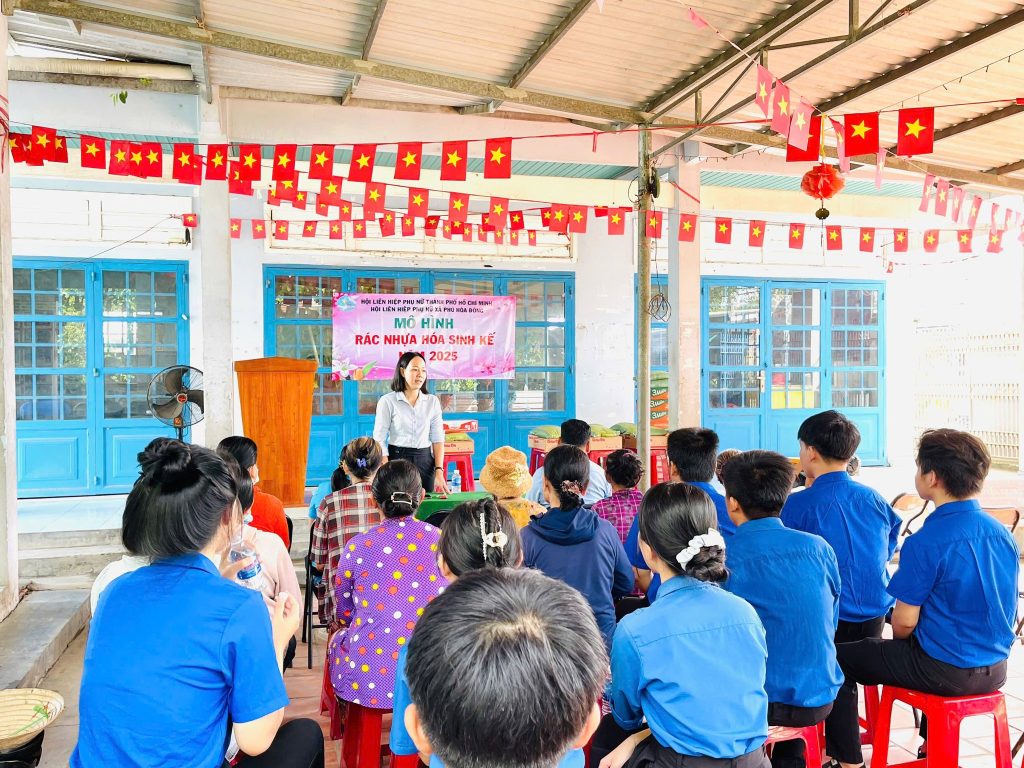 Ngày 27/8/2025 Hội LHPN xã Phú Hoà Đông tiếp tục thực hiện mô hình “Rác nhựa hoá sinh kế” tại ấp 10, nhiều người đã mang rác thải nhựa, lon nước ngọt …đến tặng chi hội phụ nữ ấp 10 để bán lấy tiền mua con giống cho chị Bùi Thị Tâm thuộc diện hộ cận nghèo. Kết quả đã trao cho chị Bùi Thị Tâm – ấp 10 một cặp vịt và 1 phần quà từ việc bán ve chai. Mô hình có ý nghĩ sâu sắc nên sẽ tiếp tục được nhân rộng trên địa bàn… Đồng thời trong chương trình Hội cũng vận động mạnh thường quân trao 15 phần quà cho hội viên, phụ nữ có hoàn cảnh khó khăn, mỗi phần 200.000 đồng. Tổng kinh phí 3 triệu đồng.