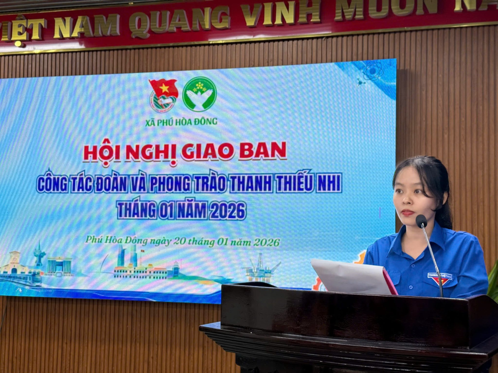 Ngày 20/01/2026, tại Hội trường Đảng ủy xã Phú Hòa Đông, Đoàn xã Phú Hòa Đông tổ chức Hội nghị giao ban công tác Đoàn và phong trào thanh thiếu nhi tháng 01 năm 2026. Hội nghị do đồng chí Trần Đỗ Xuân Thương – Đảng ủy viên, Phó Chủ tịch Uỷ ban MTTQ Việt Nam xã, Bí thư Đoàn xã chủ trì.