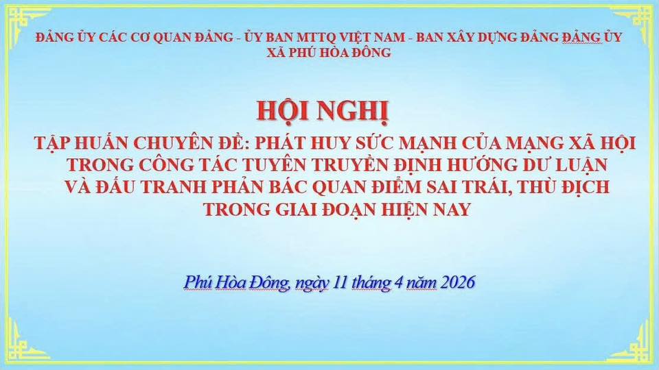 Sáng ngày 11/4/2026, tại hội trường Đảng ủy xã. Đảng ủy, Ủy ban nhân dân và Ủy ban Mặt trận Tổ quốc Việt Nam xã đã tổ chức hội nghị Tập huấn giáo dục truyền thông và nâng cao nhận thức, kỹ năng nhận diện, phản bác thông tin giả mạo cho nhân dân trong bối cảnh mới