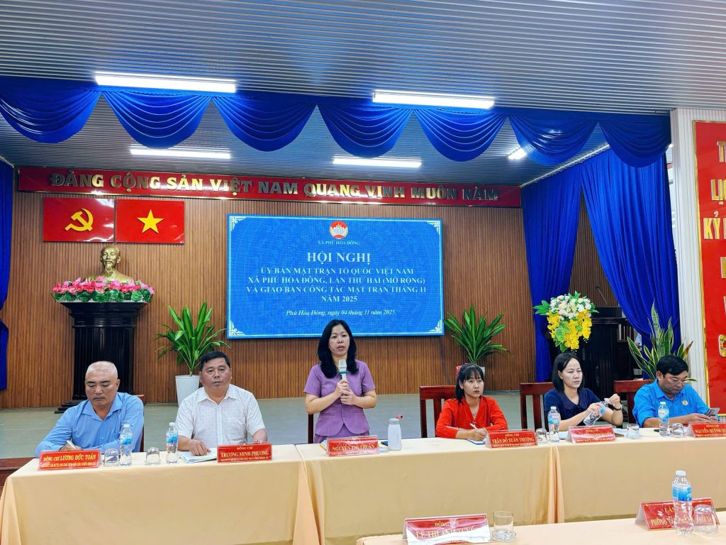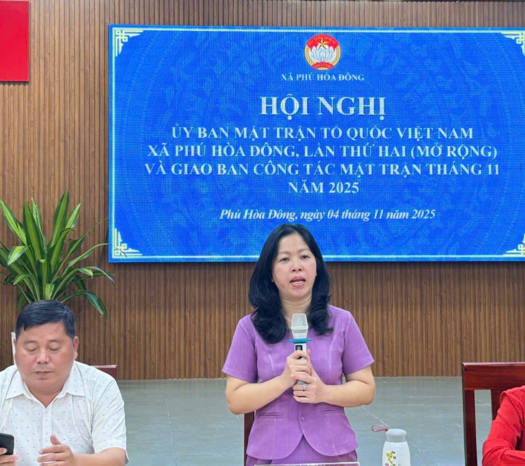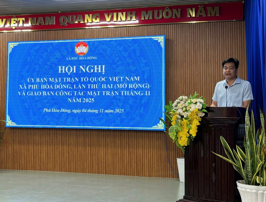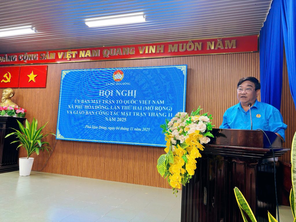 Sáng ngày 04/11/2025, Ủy ban MTTQ Việt Nam xã Phú Hòa Đông tổ chức Hội nghị Ủy ban Mặt trận Tổ quốc Việt Nam xã Phú Hòa Đông, lần thứ hai (mở rộng) và Giao ban công tác Mặt trận tháng 11 năm 2025 tại Hội trường Đảng ủy – UBMTTQ Việt Nam xã.