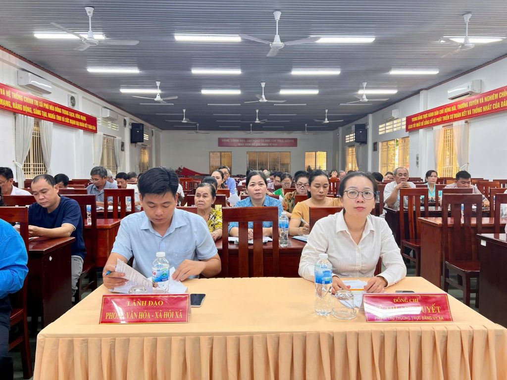 Tham dự hội nghị có đồng chí Lê Thị Ánh Tuyết – Phó Bí thư thường trực Đảng ủy xã; đồng chí Nguyễn Thị Thuận – Ủy viên Ban Thường vụ Đảng ủy, Chủ tịch Ủy ban MTTQ Việt Nam xã; đồng chí Nguyễn Hoài Lê – Phó trưởng phòng Văn hóa – xã hội xã, các đồng chí trong Ban Thường trực, Ủy viên ủy ban MTTQ Việt Nam xã, Trưởng Ban Công tác Mặt trận 57 ấp, các vị chức sắc, chức việc trên địa bàn xã và Cán bộ, công chức, chuyên viên Cơ quan Uỷ ban MTTQ Việt Nam xã cùng tham dự hội nghị.