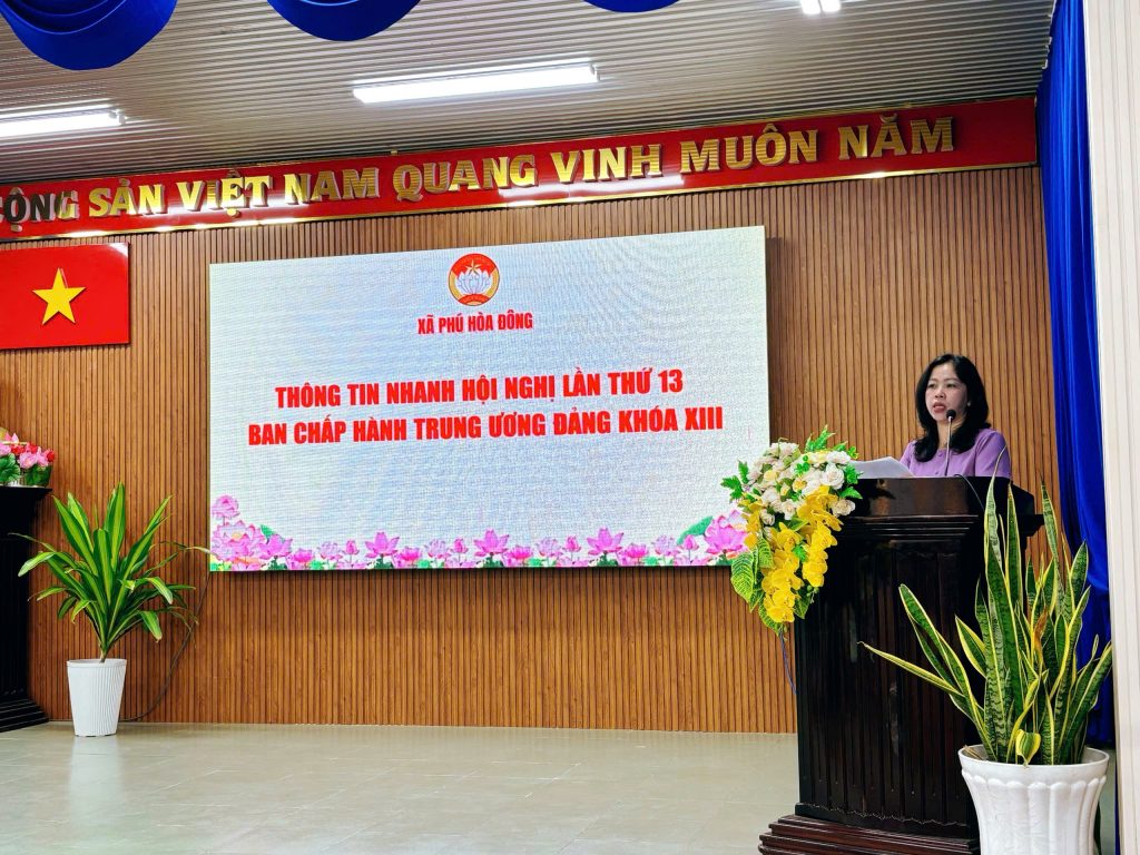 Hội nghị đã tuyên truyền, quán triệt kết quả Đại hội đại biểu Đảng bộ Thành phố Hồ Chí Minh lần thứ I, nhiệm kỳ 2025 – 2030; Nghị quyết Đại hội đại biểu Đảng bộ xã Phú Hòa Đông lần thứ I, nhiệm kỳ 2025-2030; Nghị quyết Đại hội đại biểu Mặt trận Tổ quốc xã Phú Hòa Đông lần thứ I, nhiệm kỳ 2025-2030; thông tin nhanh Hội nghị lần thứ 13 Ban Chấp hành Trung ương Đảng khóa XIII.