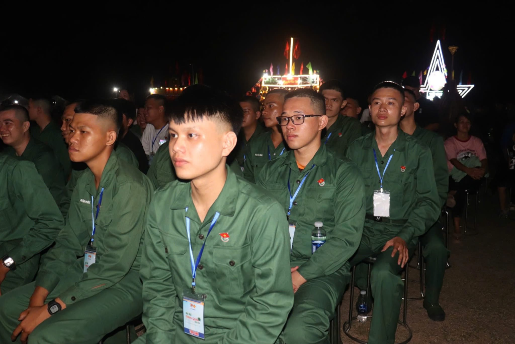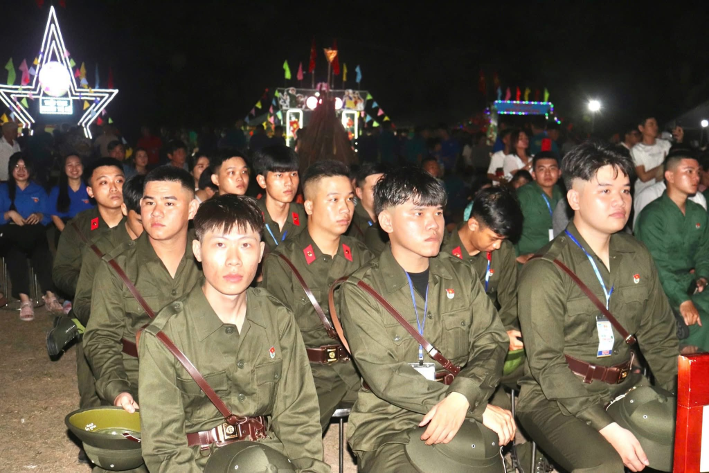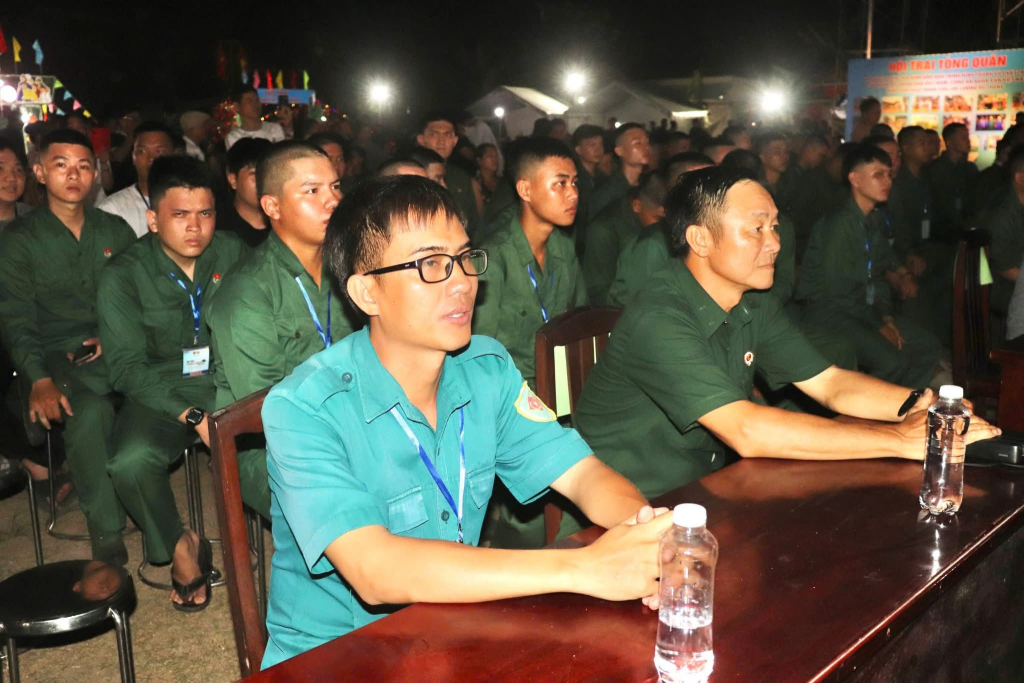 Trước khi diễn ra khai mạc hội trại, các đồng chí lãnh đạo xã thăm các tiểu trại, động viên tinh thần các tân binh.