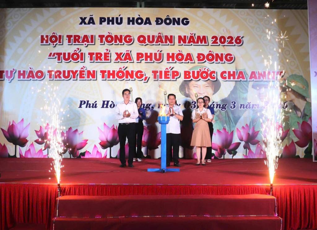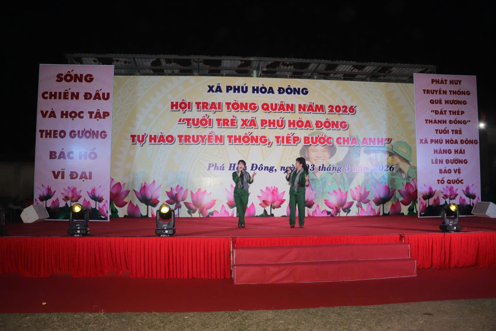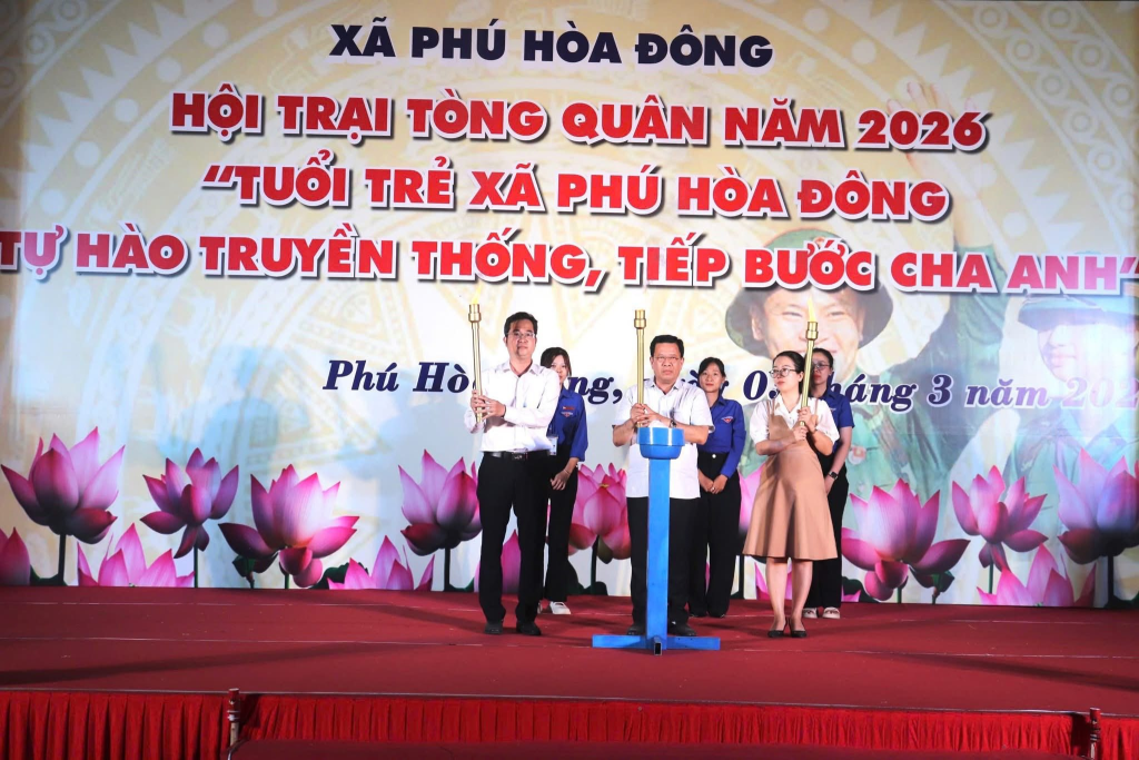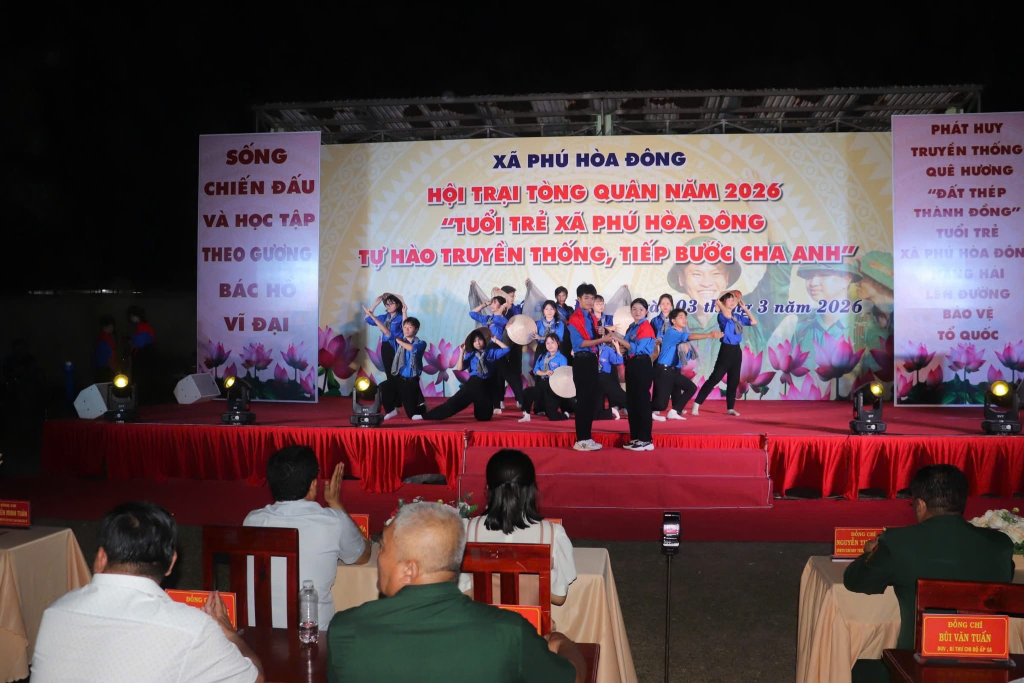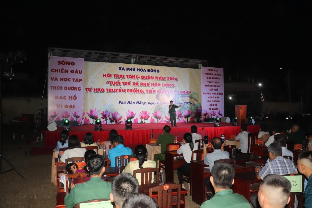 Tối 03/3/2026, tại sân vận động xã Phú Hòa Đông sôi nổi diễn ra Hội trại Tòng quân năm 2026 với chủ đề “Tuổi trẻ xã Phú Hòa Đông tự hào truyền thống, tiếp bước cha anh”.