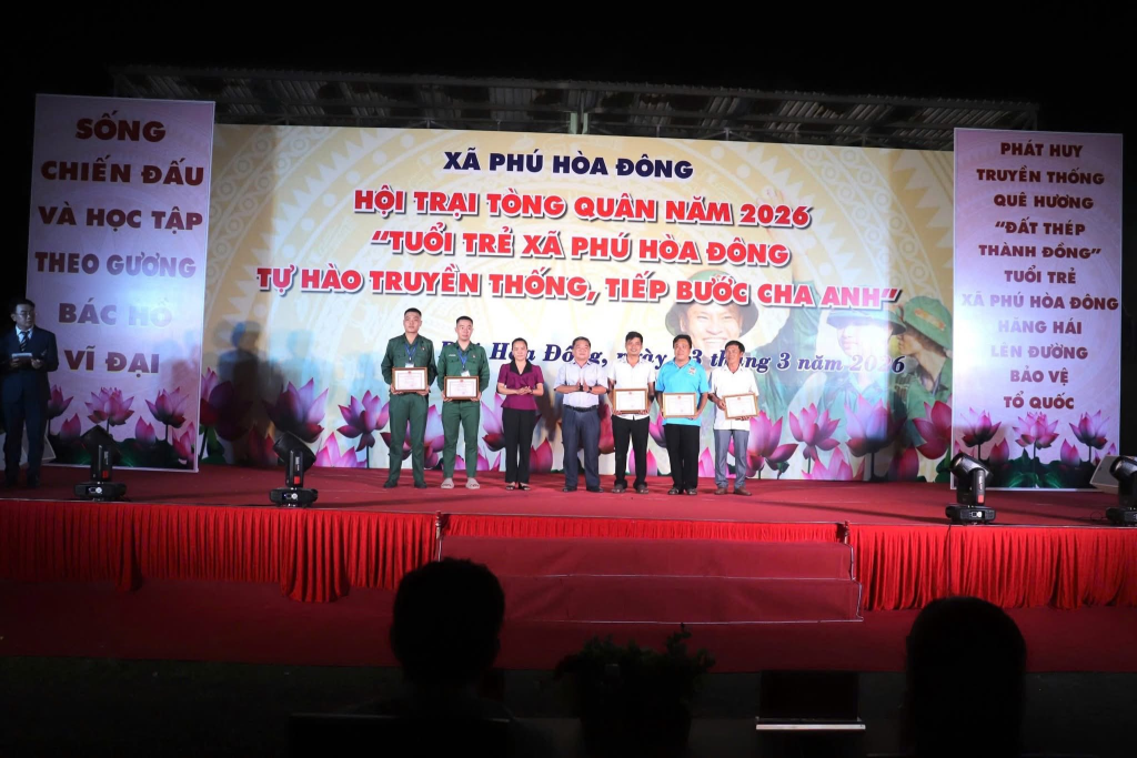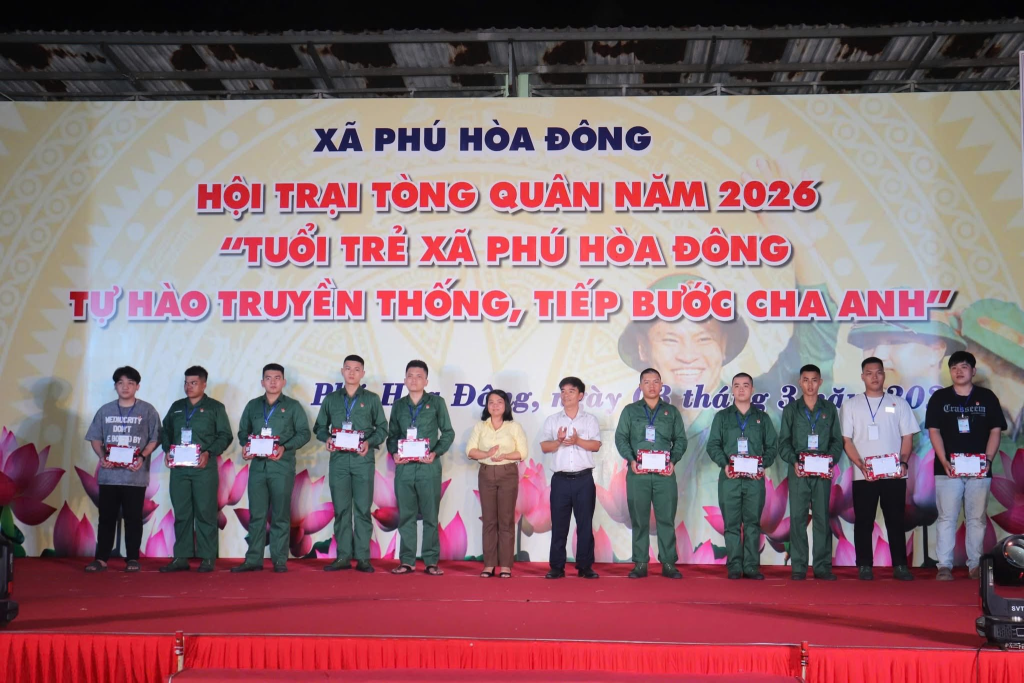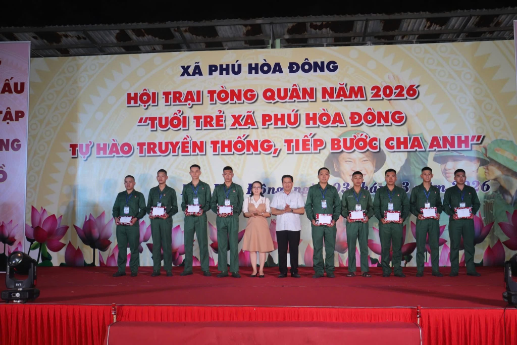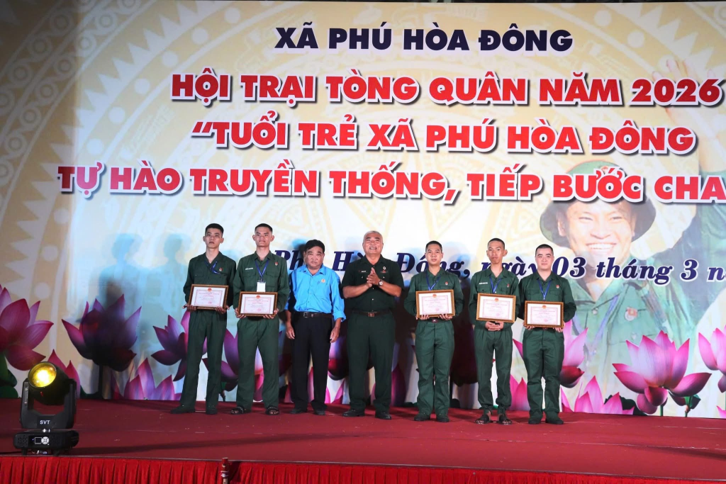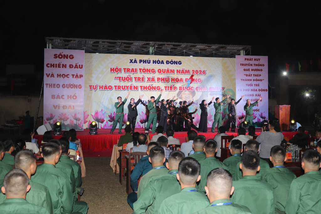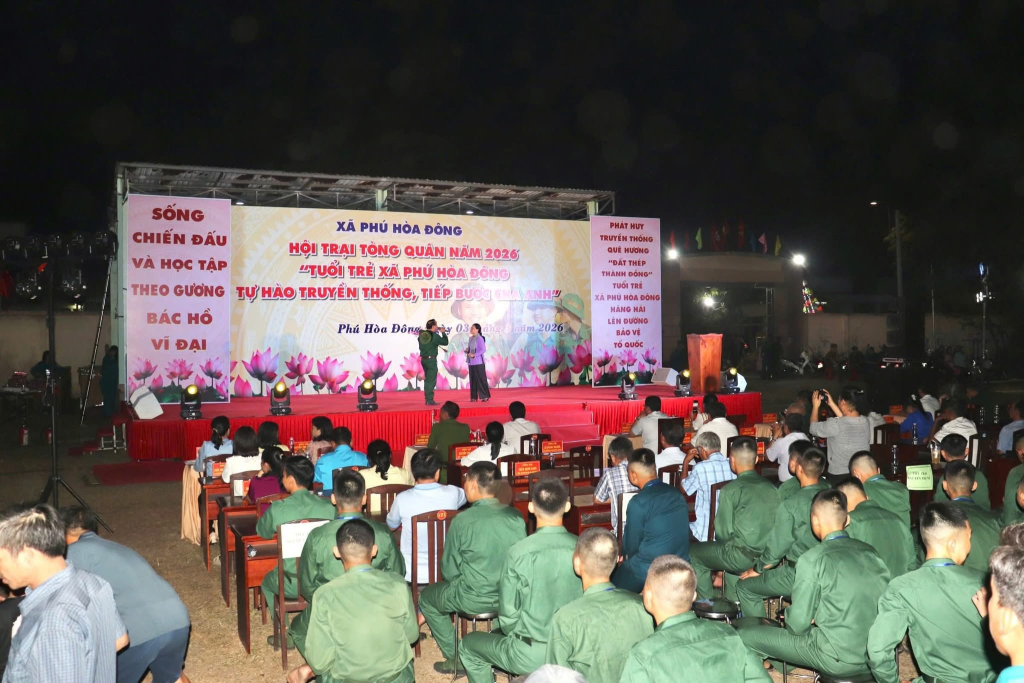 Tối 03/3/2026, tại sân vận động xã Phú Hòa Đông sôi nổi diễn ra Hội trại Tòng quân năm 2026 với chủ đề “Tuổi trẻ xã Phú Hòa Đông tự hào truyền thống, tiếp bước cha anh”.