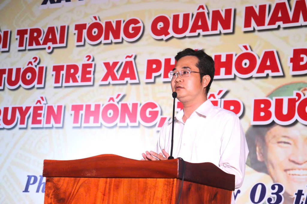 Dự và phát biểu khai mạc, đồng chí Nguyễn Minh Tuấn, Phó Bí thư Đảng ủy, Chủ tịch UBND xã, Chủ tịch Hội đồng Nghĩa vụ quân sự xã nhấn mạnh: Môi trường quân đội và công an nhân dân sẽ là trường học lớn để các thanh niên rèn luyện bản lĩnh, ý chí, tinh thần kỷ luật và tác phong chính quy. Những năm tháng quân ngũ sẽ là quãng thời gian quý báu để trưởng thành, tích lũy kinh nghiệm sống, hun đúc lý tưởng và trách nhiệm đối với công đồng, quê hương và Tổ quốc. Đồng chí tin tưởng rằng các thanh niên sẽ tiếp tục phát huy truyền thống quê hương Phú Hòa Đông anh hùng, giữ gìn và lan tỏa hình ảnh đẹp của thanh niên Phú Hòa Đông.