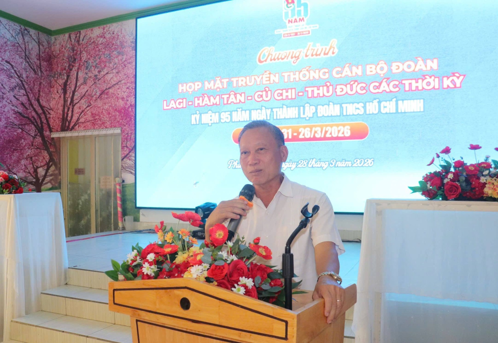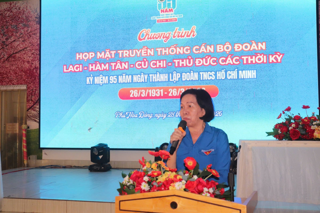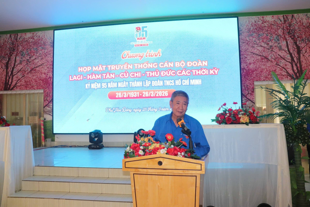 Sáng ngày 28/3/2026, Đoàn xã Phú Hòa Đông phối hợp cùng Đoàn phường Tam Bình và Câu lạc bộ Cựu cán bộ Đoàn Lagi – Hàm Tân long trọng tổ chức chương trình Họp mặt truyền thống cán bộ Đoàn Lagi – Hàm Tân – Củ Chi – Thủ Đức các thời kỳ chào mừng kỷ niệm 95 năm Ngày thành lập Đoàn TNCS Hồ Chí Minh (26/3/1931 – 26/3/2026) với sự tham dự của hơn 60 cán bộ đoàn, đoàn viên thanh niên các đơn vị.