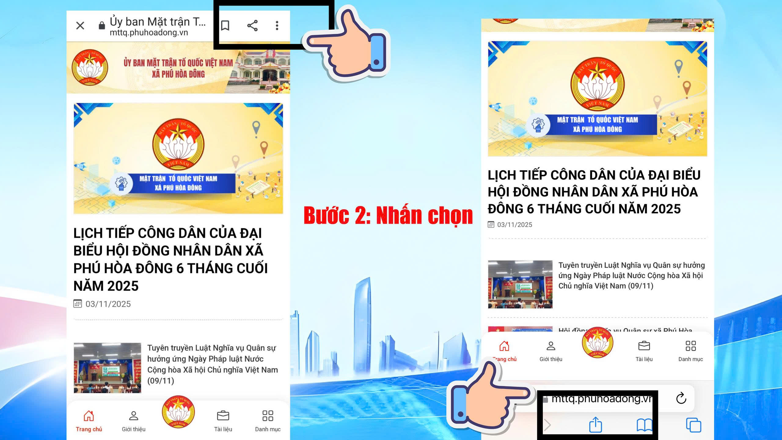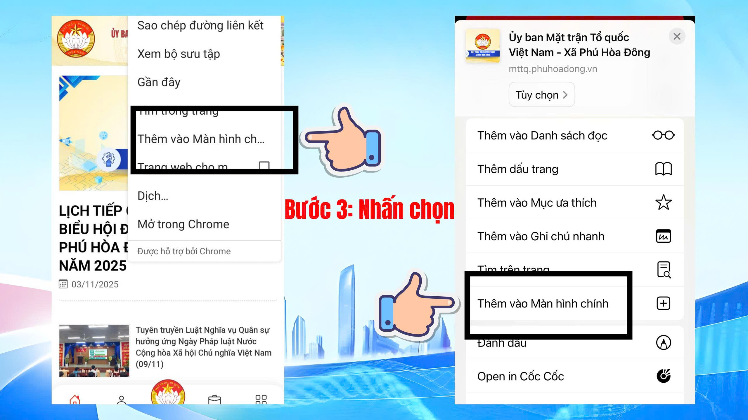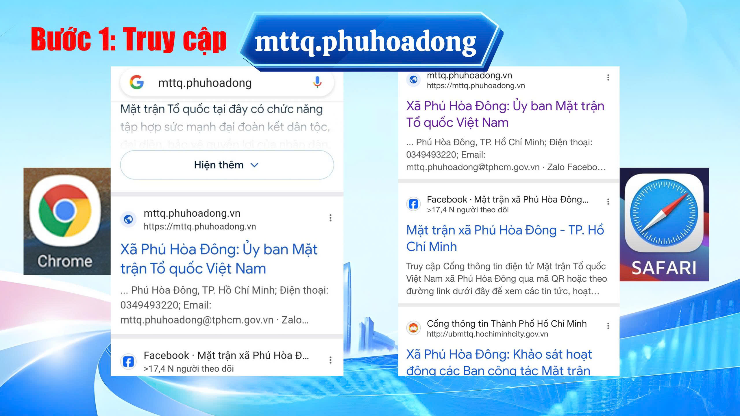 Hướng dẫn cài đặt mini web cổng thông tin Mặt trận Tổ quốc Việt Nam xã Phú Hòa Đông chi tiết tại các infographic dưới đây. Xin mời toàn thể người dân trên địa bàn xã theo dõi và thực hiện theo hướng dẫn.