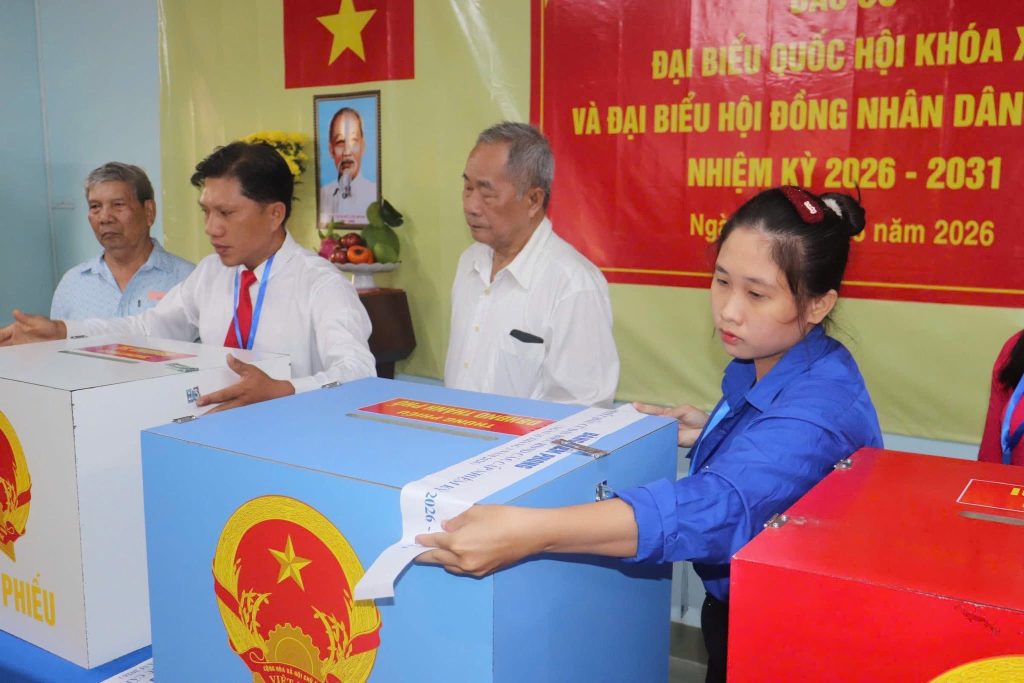 Sau phần khai mạc, cử tri tiến hành bỏ phiếu bầu trong trật tự, thực hiện tốt nội quy phòng bỏ phiếu, trình tự bỏ phiếu.
