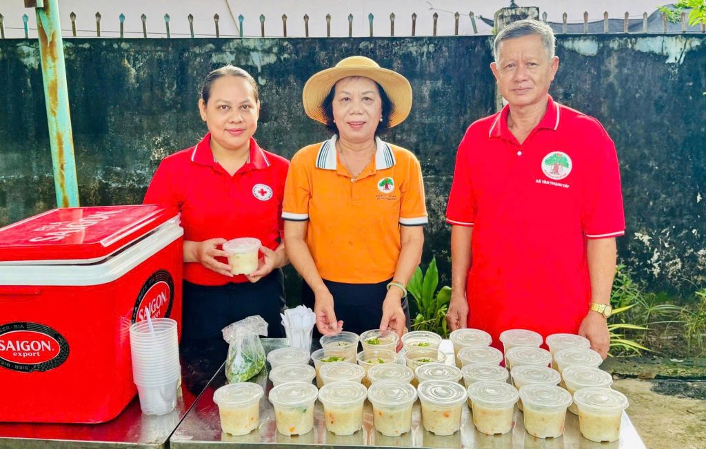 Chương trình còn gửi tặng 400 hộp cháo dinh dưỡng cho các cụ đến khám, thể hiện sự quan tâm, chăm sóc và tri ân đối với người cao tuổi.