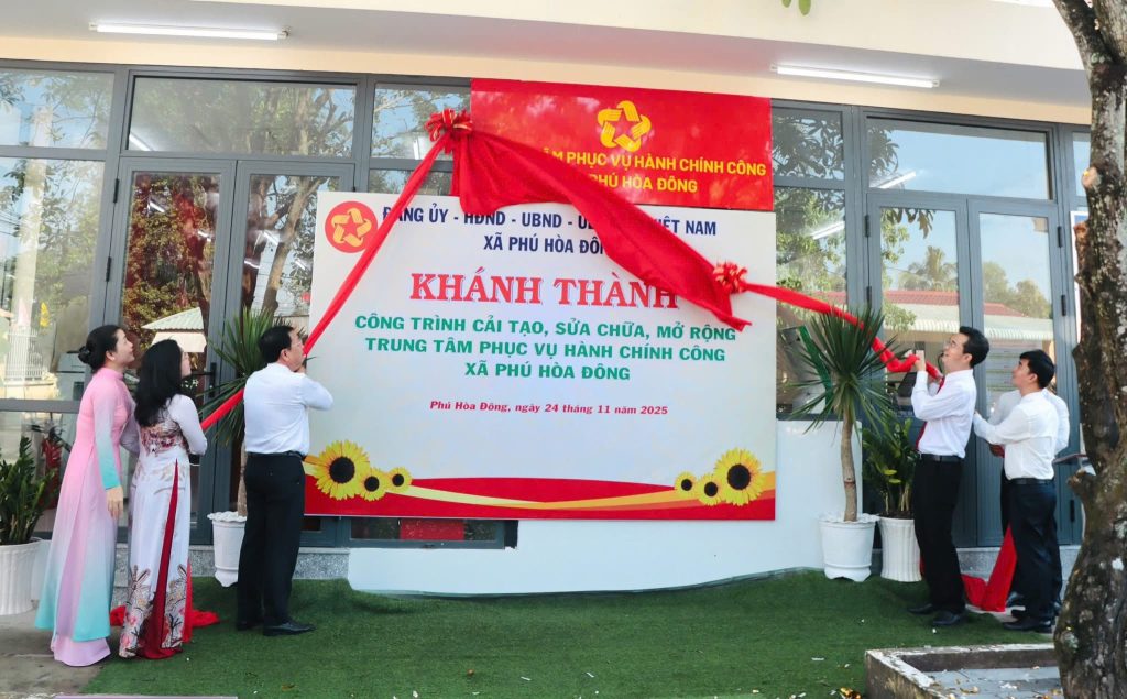 Sáng ngày 24/11/2025, Đảng ủy – Hội đồng Nhân dân – Ủy ban Nhân dân – Ủy ban Mặt trận Tổ quốc Việt Nam xã Phú Hòa Đông đã tổ chức Lễ khánh thành Công trình cải tạo, sửa chữa, mở rộng Trung tâm phục vụ hành chính công xã Phú Hòa Đông.