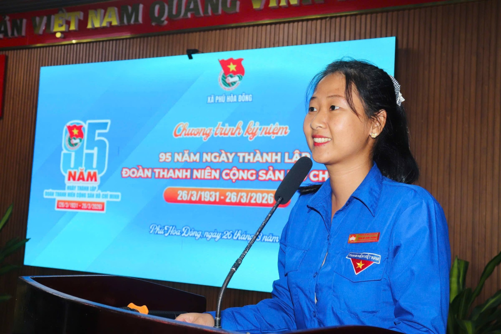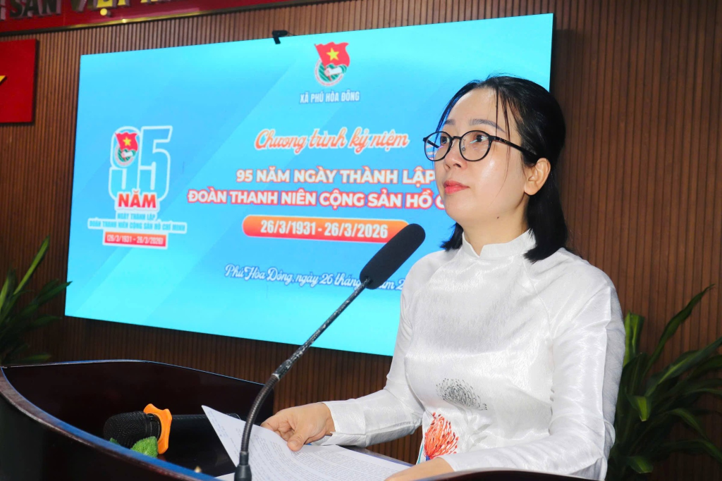 Ngày 26/3/2026, Đoàn xã Phú Hòa Đông long trọng tổ chức Lễ kỷ niệm 95 năm Ngày thành lập Đoàn Thanh niên Cộng sản Hồ Chí Minh tại Hội trường Đảng ủy xã.