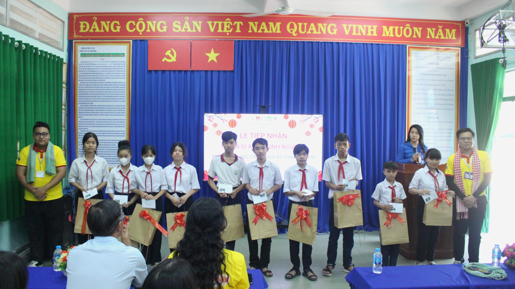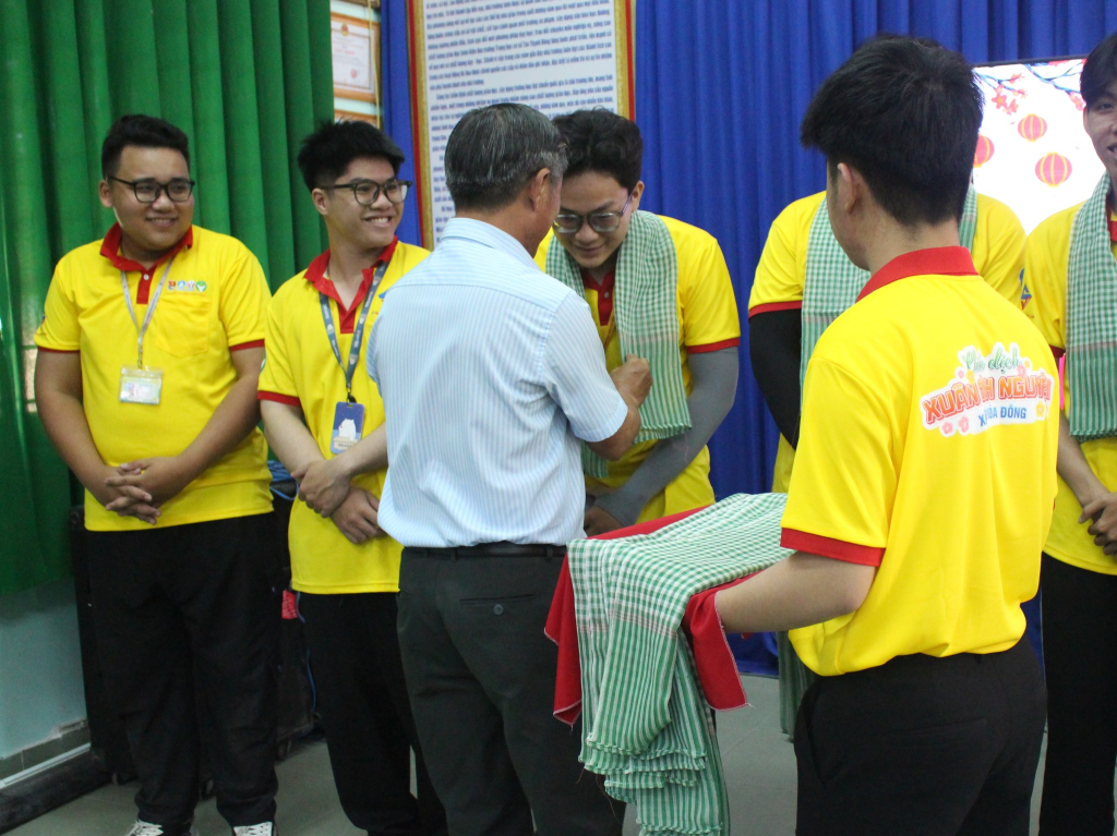 Tại buổi lễ, Xã Đoàn Phú Hòa Đông đã trao tặng khăn rằn cho các chiến sĩ, thể hiện sự quan tâm, động viên tinh thần các bạn sinh viên tình nguyện trong suốt thời gian tham gia chiến dịch. Dịp này, Chiến sĩ Xuân tình nguyện Trường Đại học Công nghệ Kỹ thuật cũng đã trao tặng 10 phần quà cho các em học sinh có hoàn cảnh khó khăn tại Trường THCS Tân Thạnh Đông tổng giá trị 4.000.000 đồng.