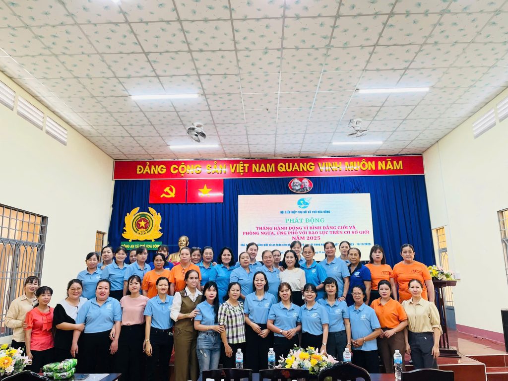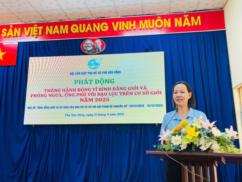 Sáng ngày 15/11/2025, Hội LHPN xã Phú Hòa Đông tổ chức lễ phát động Tháng hành động vì bình đẳng giới và phòng ngừa, ứng phó với bạo lực trên cơ sở giới năm 2025 với chủ đề năm 2025: “Bình đẳng giới và an toàn cho phụ nữ và trẻ em gái trong kỷ nguyên số”.