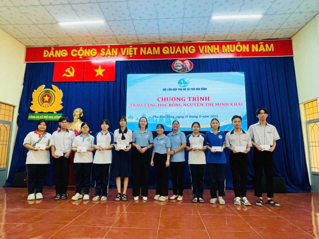 Tại buổi tuyên truyền, Hội đã trao tặng 10 phần học bổng Nguyễn Thị Minh Khai và bảo hiểm y tế cho 10 em học sinh có hoàn cảnh khó khăn, học giỏi, tổng trị giá 16 triệu đồng do gia đình ông Nguyễn Minh Triết tài trợ. Những phần hỗ trợ thiết thực góp phần giúp các em yên tâm đến trường, tiếp tục nuôi dưỡng ước mơ và ý chí phấn đấu.