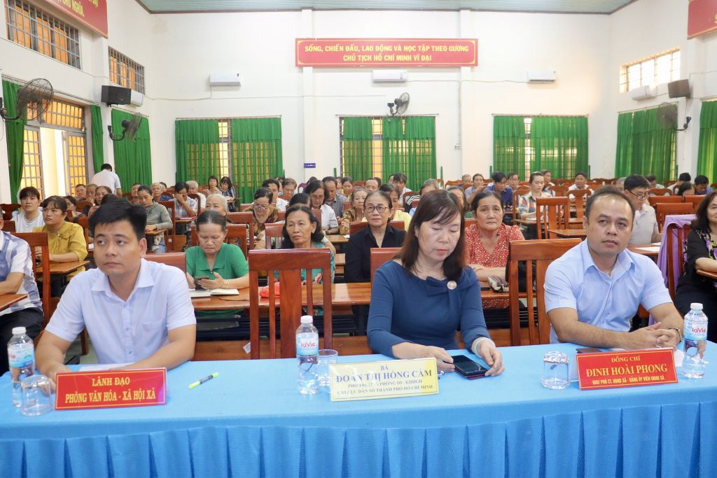Đến tham dự chương trình có bà Đoàn Thị Cẩm Hồng – Phó Trưởng phòng Dân số, Chi cục Dân số Thành phố Hồ Chí Minh; ông Đinh Hoài Phong – Phó Chủ tịch UBND xã, Trưởng Ban Chỉ đạo công tác Dân số và Phát triển xã; ông Nguyễn Huỳnh Quang – Phó Chủ tịch Ủy ban Mặt trận Tổ quốc Việt Nam xã, Chủ tịch Công Đoàn xã; bà Nguyễn Thị Mỹ Linh – Phó Trưởng Trạm y tế xã cùng đại diện các ban, ngành, đoàn thể xã, thành viên Ban Chỉ đạo công tác Dân số và Phát triển, Ban Chấp hành Câu lạc bộ, các trưởng ấp, cộng tác viên dân số và đông đảo hội viên người cao tuổi trên địa bàn xã.