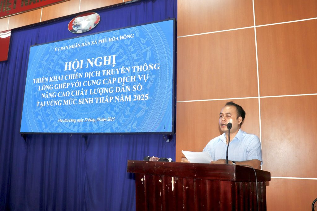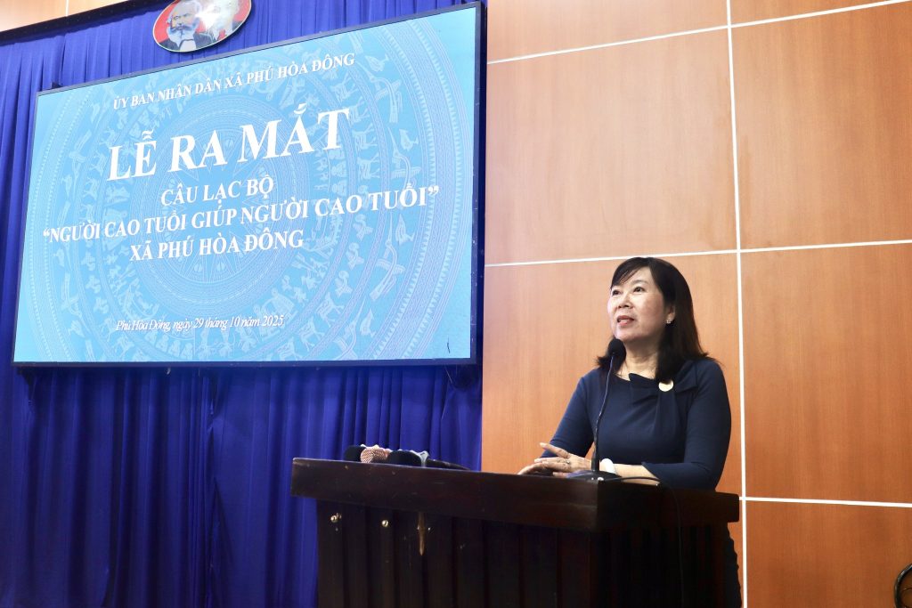 Ngày 29 tháng 10 năm 2025, Ủy ban nhân dân xã Phú Hòa Đông long trọng tổ chức Hội nghị ra mắt Câu lạc bộ “Người cao tuổi giúp người cao tuổi” và triển khai Chiến dịch truyền thông lồng ghép với cung cấp dịch vụ nâng cao chất lượng dân số tại vùng mức sinh thấp năm 2025.