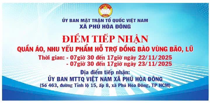 Tiếp nhận tại: Ủy ban MTTQ Việt Nam xã Phú Hòa Đông (Số 463, đường Tỉnh lộ 15, ấp 8, xã Phú Hòa Đông, TP. HCM)