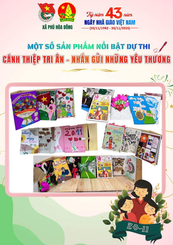 Trong các hội thi “Cánh thiệp tri ân” và “Trò sáng tạo – Thầy cô vui” chào mừng 43 năm Ngày Nhà giáo Việt Nam (20/11/1982 – 20/11/2025), nhiều sản phẩm dự thi đã để lại ấn tượng đẹp nhờ sự sáng tạo và tình cảm chân thành của các thí sinh.