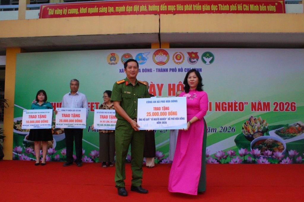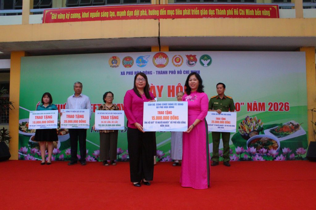 Sáng ngày 25/01/2026, tại Trường THPT Trung Phú, Ủy ban Mặt trận Tổ quốc Việt Nam xã Phú Hòa Đông phối hợp cùng các cơ sở tôn giáo, doanh nghiệp, đơn vị, trường học và các tổ chức, cá nhân hảo tâm tổ chức Ngày hội Ẩm thực buffet chay gây quỹ “Vì người nghèo” năm 2026. Đây là hoạt động thiết thực nhằm chăm lo cho hộ cận nghèo, hộ có hoàn cảnh khó khăn trên địa bàn xã nhân dịp Tết Nguyên đán Bính Ngọ 2026.