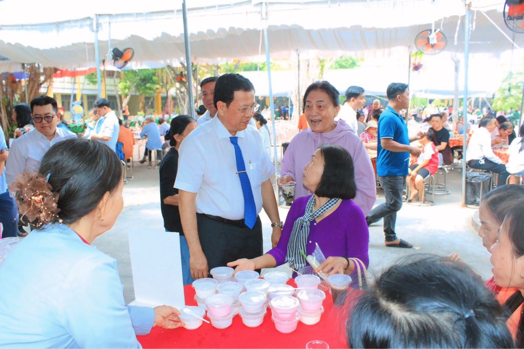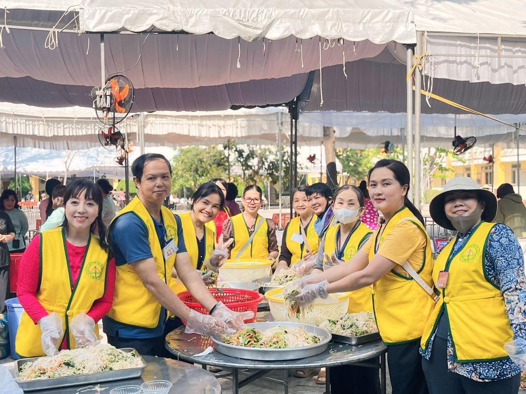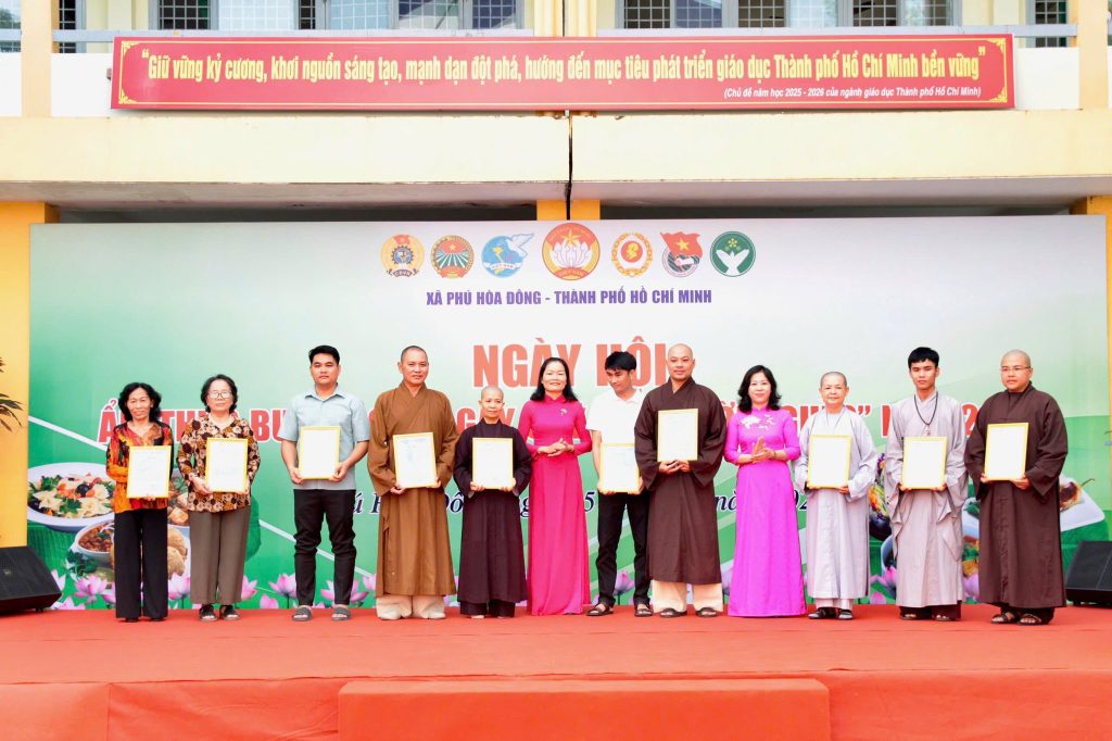 Ngay sau phần lễ, các đại biểu và Nhân dân đã cùng tham quan, giao lưu và thưởng thức các gian hàng buffet chay với gần 50 món ăn phong phú, được chuẩn bị công phu, mang đậm nét văn hóa ẩm thực chay truyền thống, tạo không khí vui tươi, ấm áp, đoàn kết và nghĩa tình.
