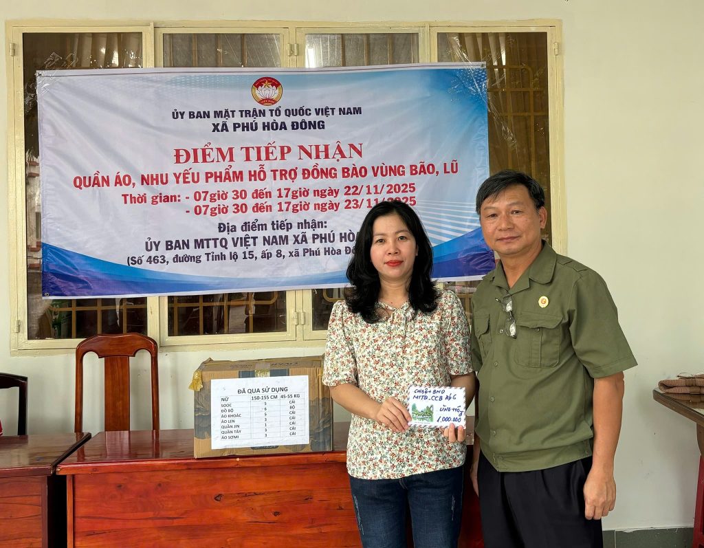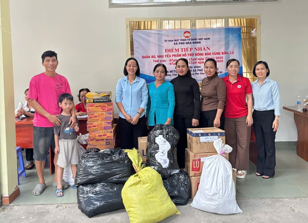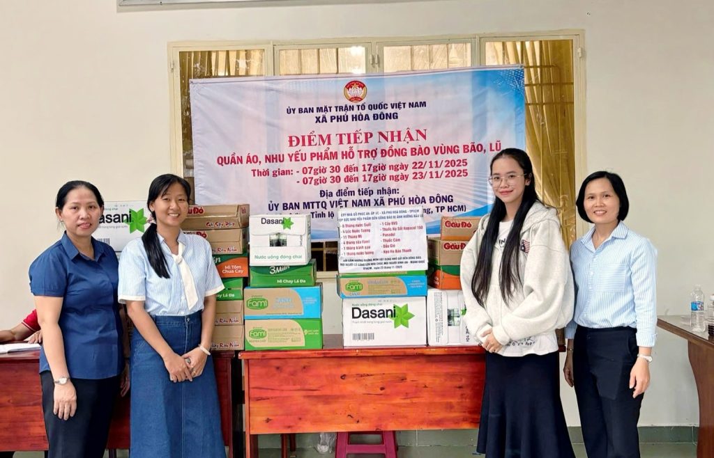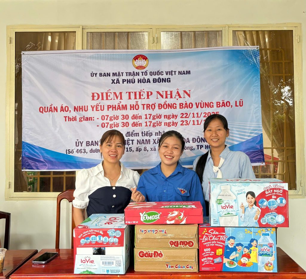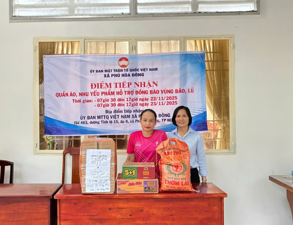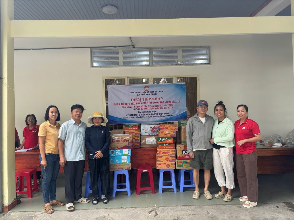 Hiện tại, tại điểm tiếp nhận của Ủy ban MTTQ Việt Nam xã Phú Hòa Đông, cán bộ Mặt trận và các tình nguyện viên đang khẩn trương tiếp nhận, phân loại hàng cứu trợ.