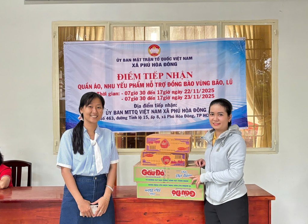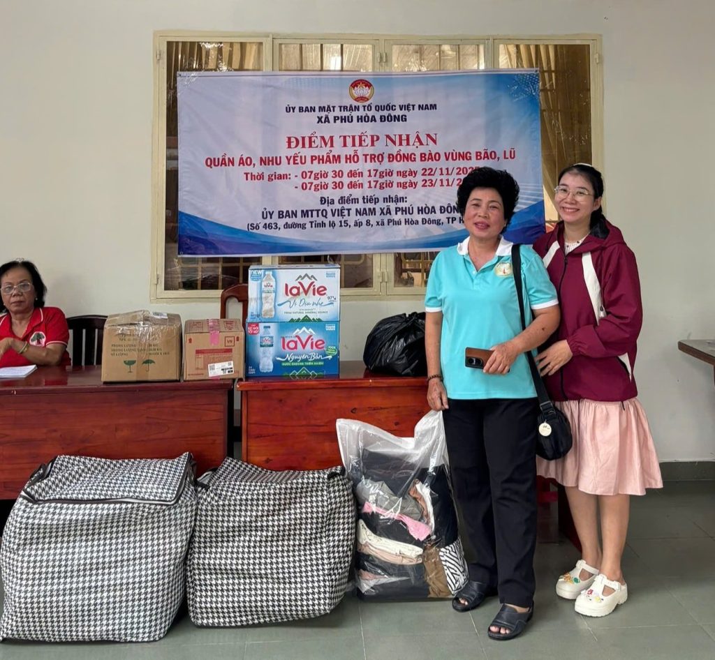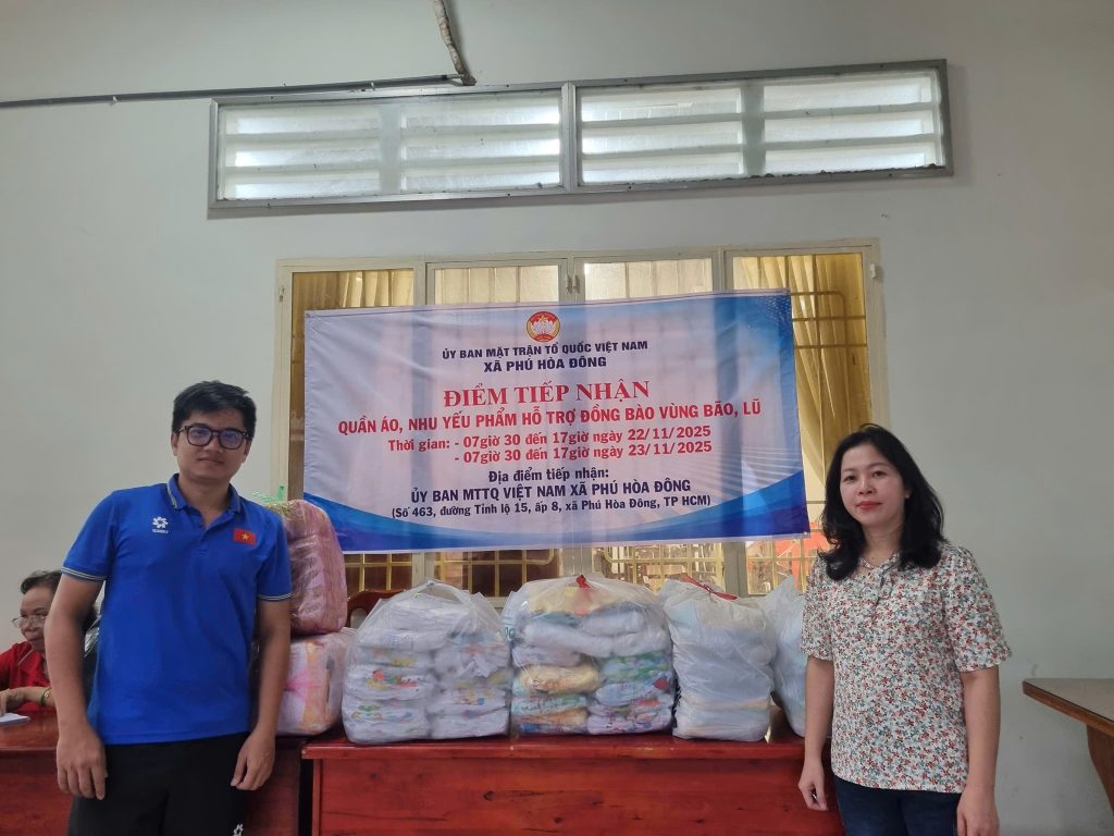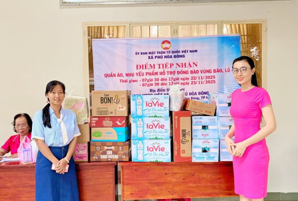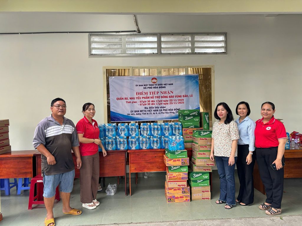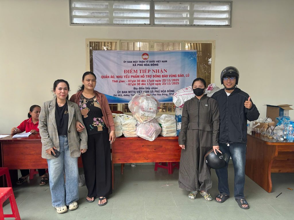 Hiện tại, tại điểm tiếp nhận của Ủy ban MTTQ Việt Nam xã Phú Hòa Đông, cán bộ Mặt trận và các tình nguyện viên đang khẩn trương tiếp nhận, phân loại hàng cứu trợ.