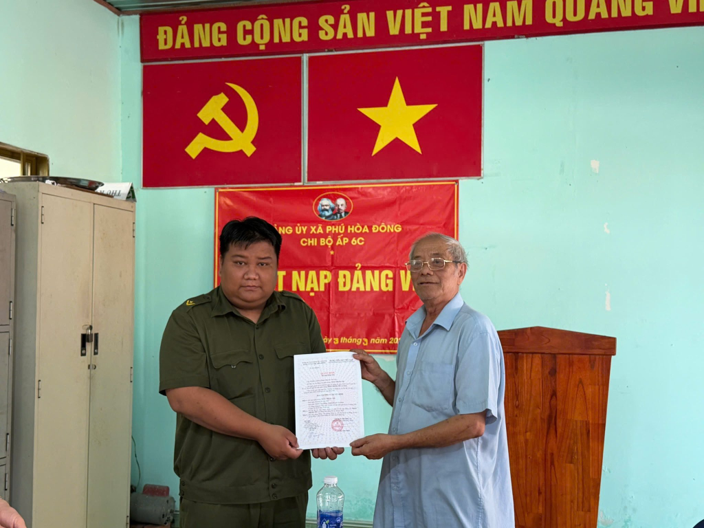 Các đoàn viên vinh dự được kết nạp vào Đảng Cộng sản Việt Nam gồm: đồng chí Trần Trung Tín – Chi bộ ấp 6C; đồng chí Phạm Tấn Thành – Chi bộ ấp Chợ; đồng chí Đỗ Hoàn Thiện – Chi bộ ấp 12, thuộc Đảng bộ xã Phú Hòa Đông.