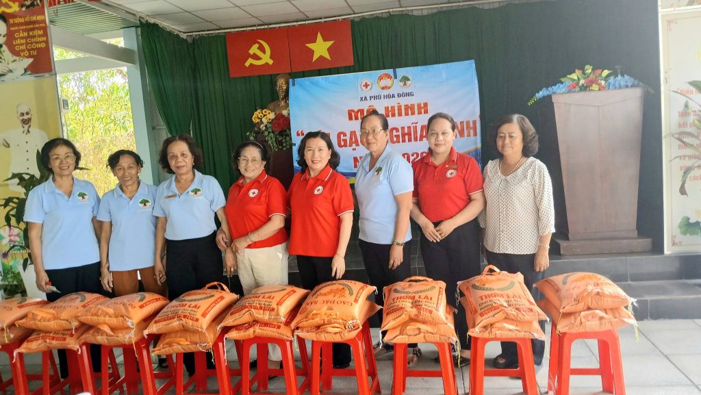 Mô hình “Túi gạo nghĩa tình” được Hội Chữ thập đỏ xã triển khai từ năm 2017, ban đầu hỗ trợ 03 hộ, đến nay đã nâng lên 19 hộ được chăm lo thường xuyên, trong đó: 18 hộ nhận 10 kg gạo/tháng; 01 hộ nhận 10 kg gạo và tiền mặt 100.000 đồng/tháng.