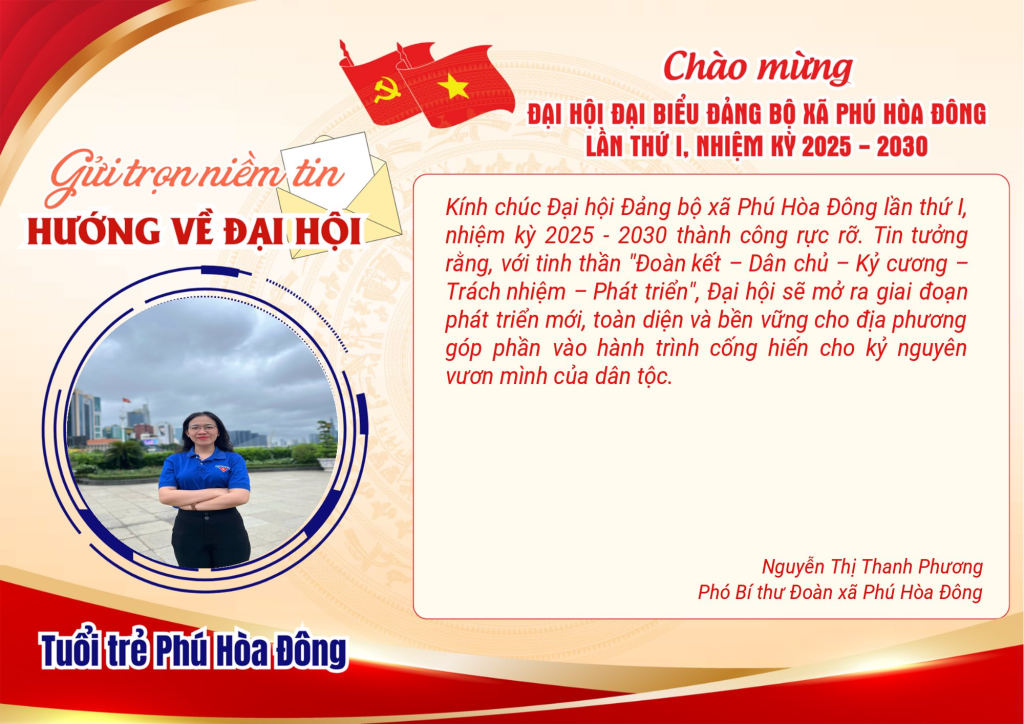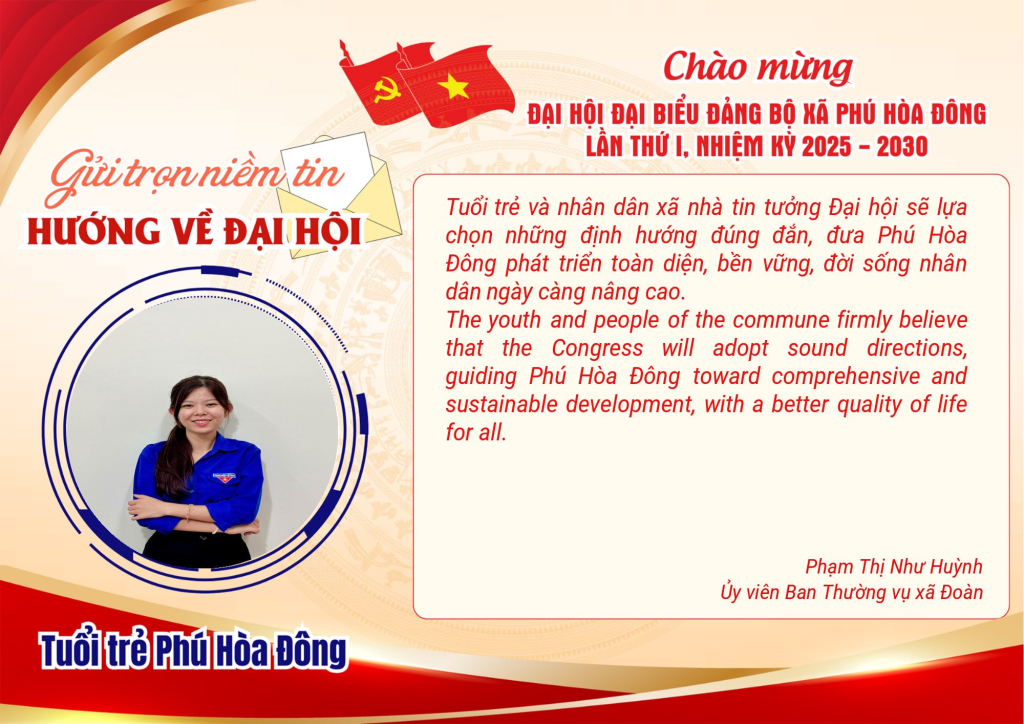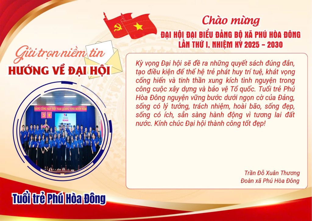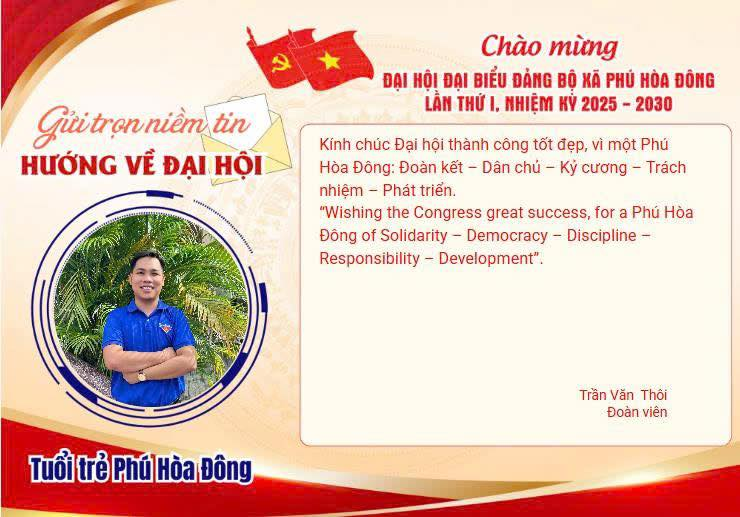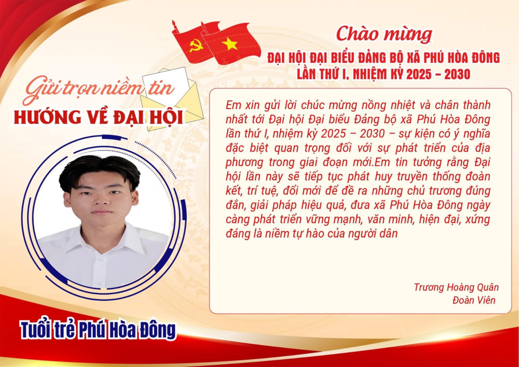 Những lời chúc không chỉ là sự động viên, mà còn thể hiện niềm tin của thế hệ trẻ vào vai trò lãnh đạo của Đảng. Tuổi trẻ Phú Hòa Đông nỗ lực, tiên phong và đoàn kết – vì một nhiệm kỳ thành công, vì một Phú Hòa Đông phát triển bền vững.