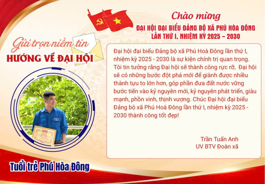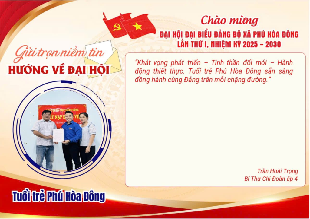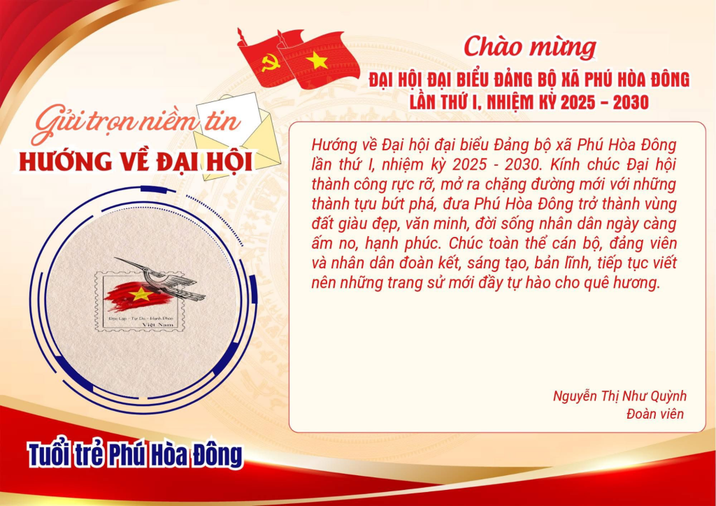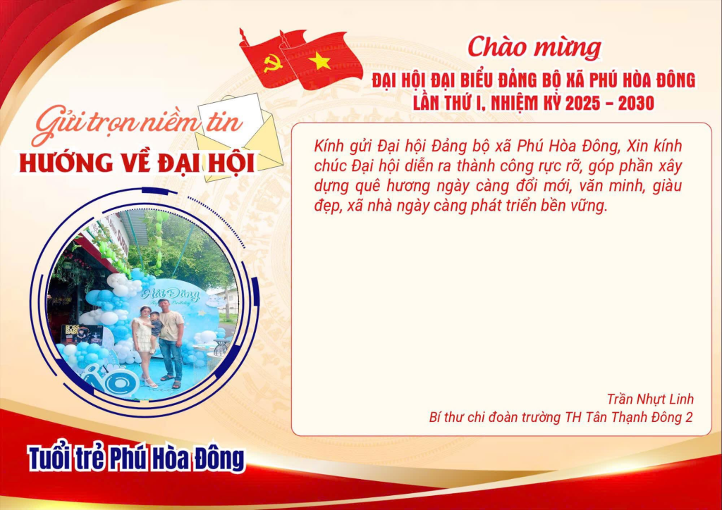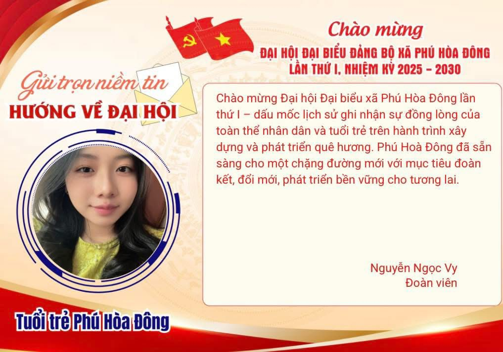 Những lời chúc không chỉ là sự động viên, mà còn thể hiện niềm tin của thế hệ trẻ vào vai trò lãnh đạo của Đảng. Tuổi trẻ Phú Hòa Đông nỗ lực, tiên phong và đoàn kết – vì một nhiệm kỳ thành công, vì một Phú Hòa Đông phát triển bền vững.