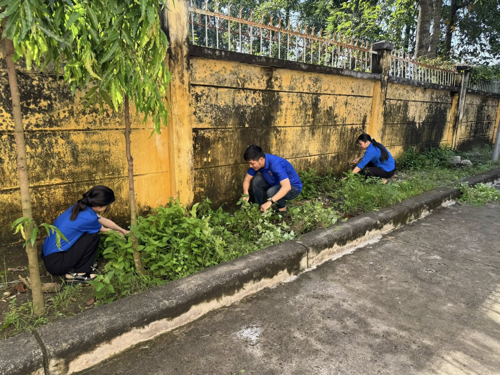 Đoàn viên đã ra quân vệ sinh môi trường, thu gom rác thải, phát quang các tuyến đường, tháo gỡ quảng cáo sai quy định góp phần xây dựng cảnh quan xanh – sạch – đẹp .