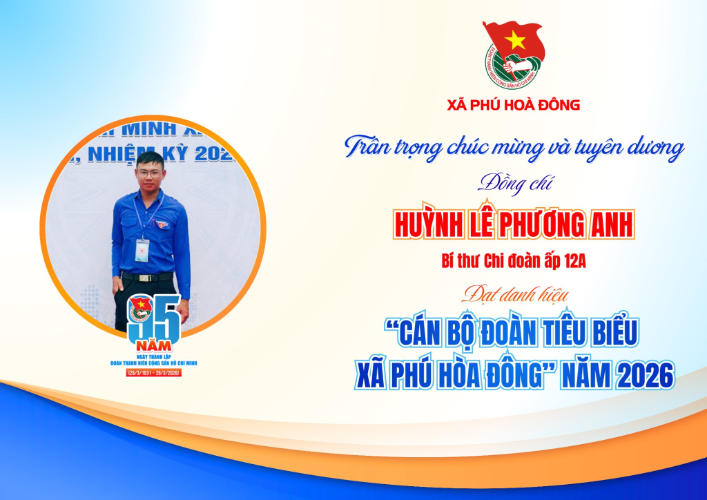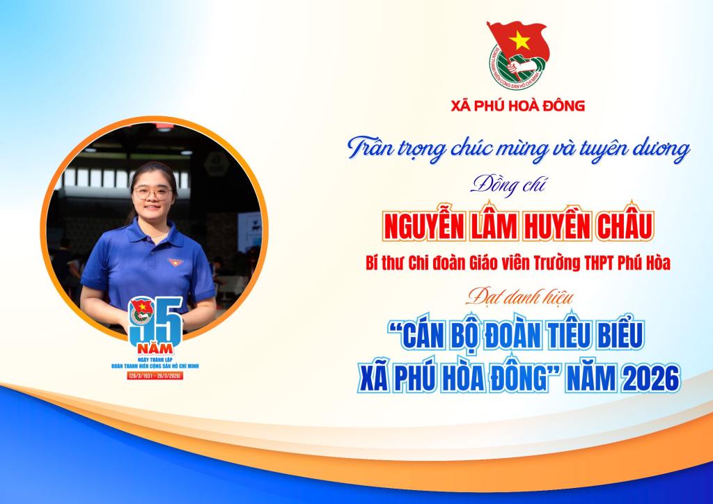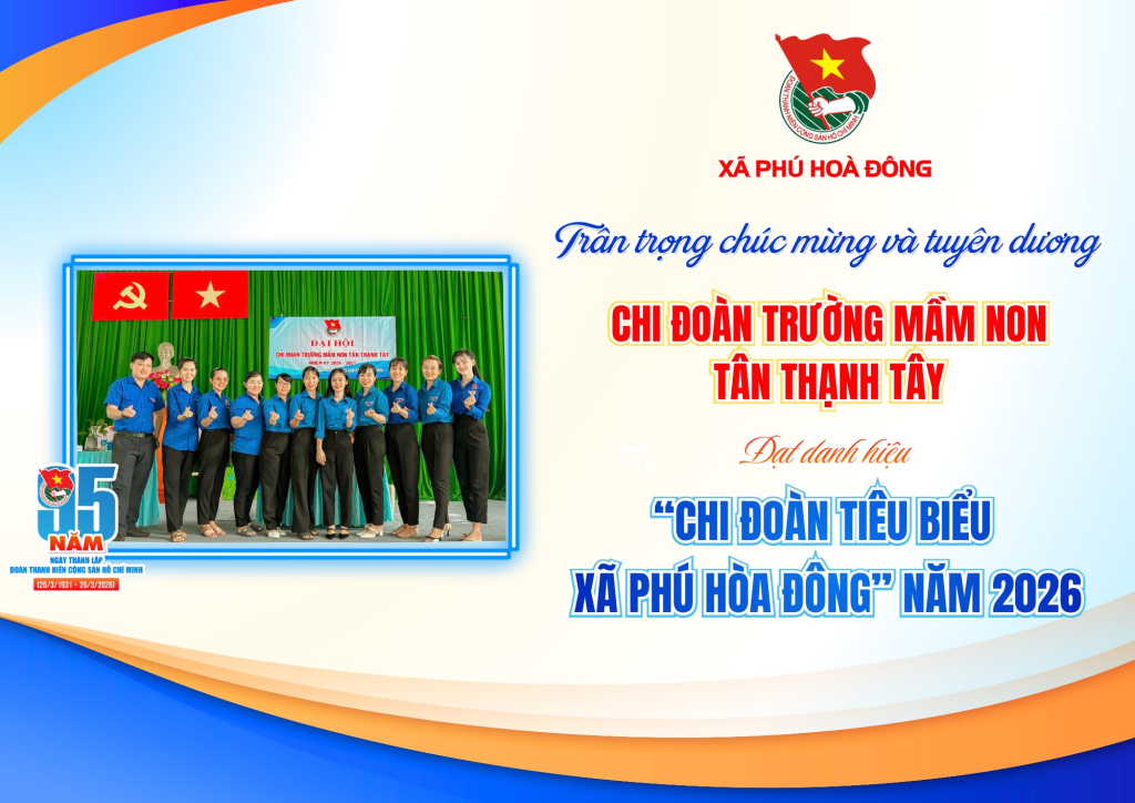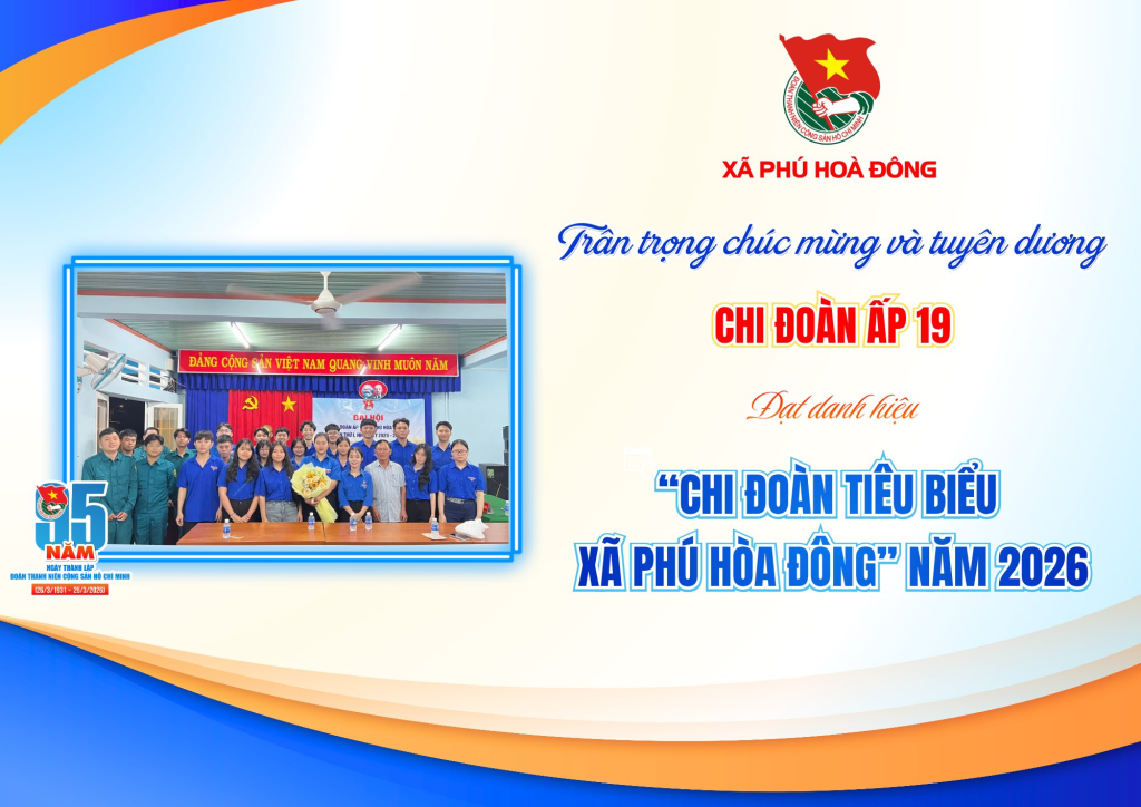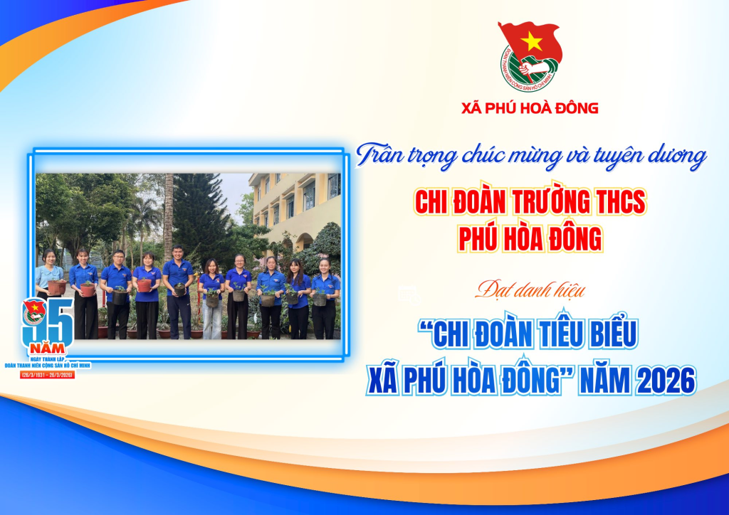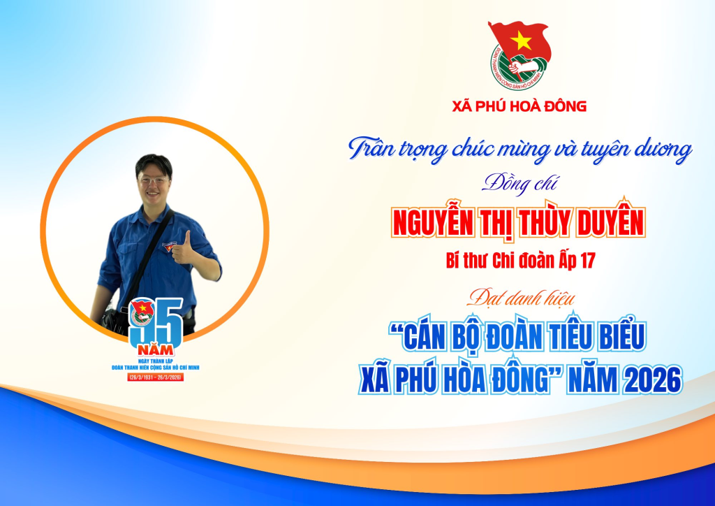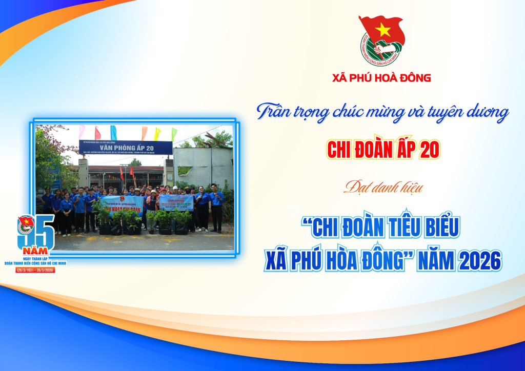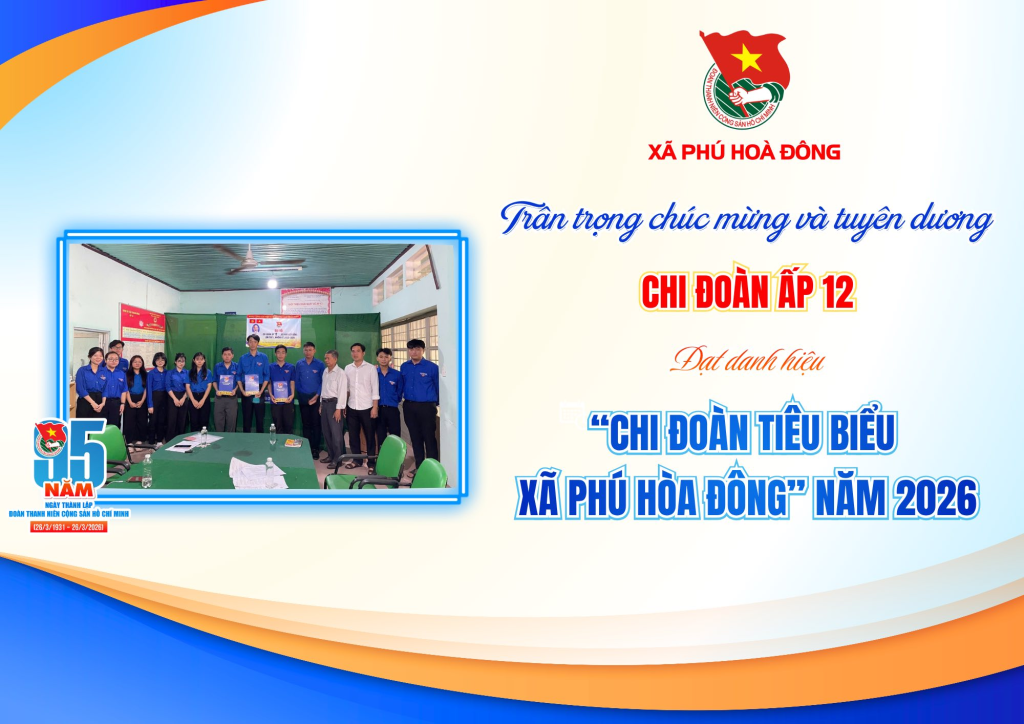 Ban Chấp hành Xã Đoàn Phú Hòa Đông trân trọng chúc mừng và tuyên dương 20 Chi đoàn tiêu biểu và 27 Cán bộ Đoàn tiêu biểu năm 2026.