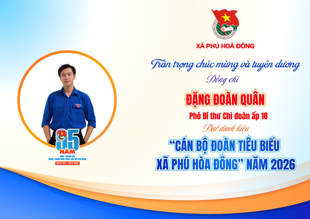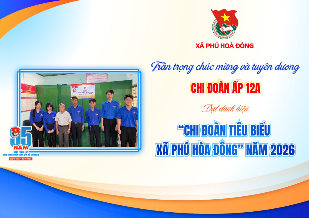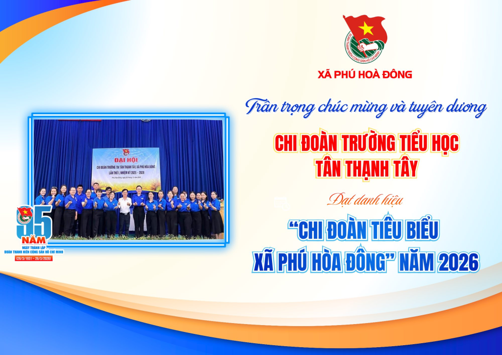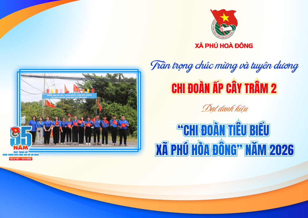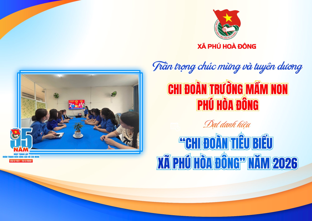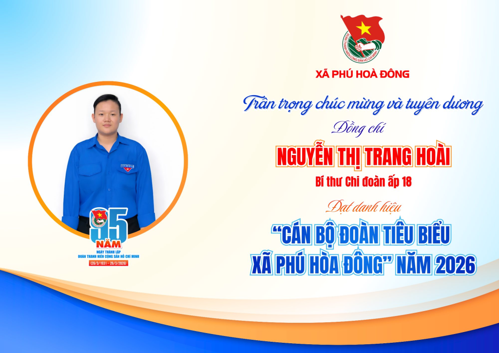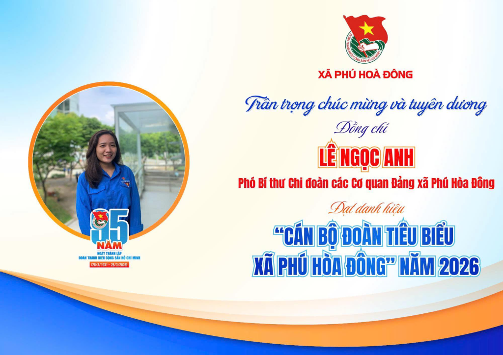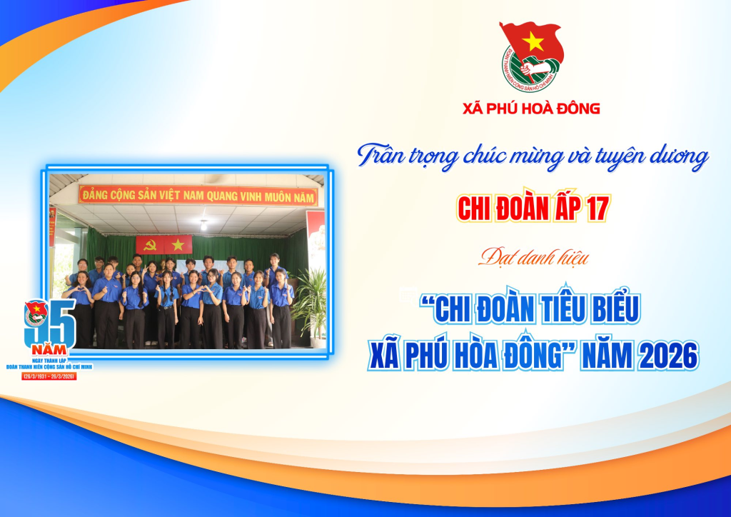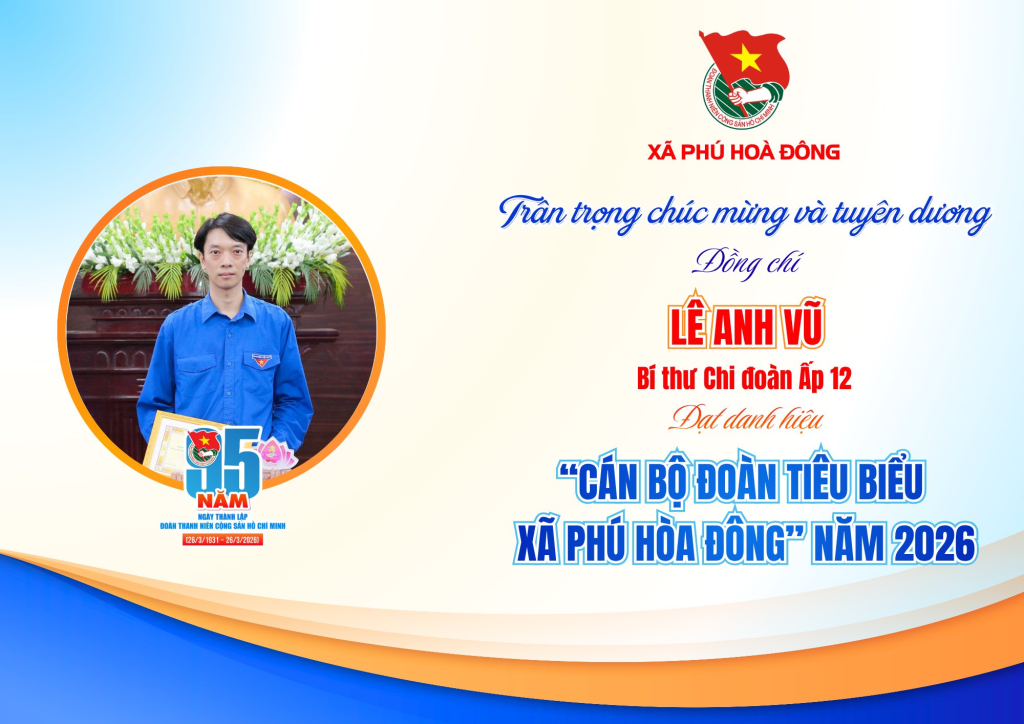 Ban Chấp hành Xã Đoàn Phú Hòa Đông trân trọng chúc mừng và tuyên dương 20 Chi đoàn tiêu biểu và 27 Cán bộ Đoàn tiêu biểu năm 2026.