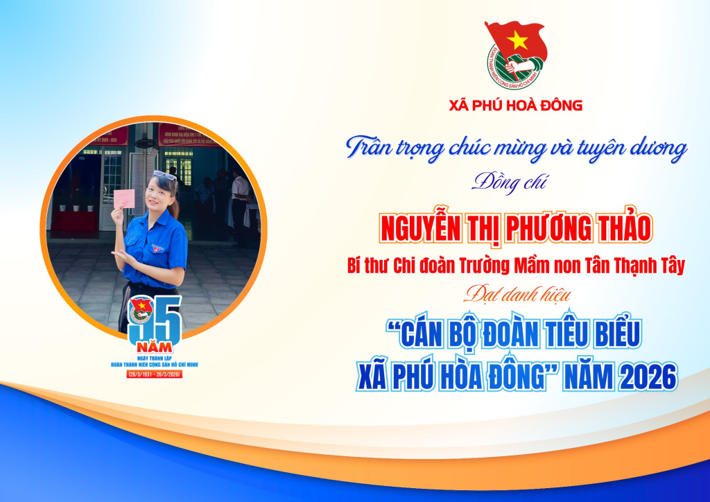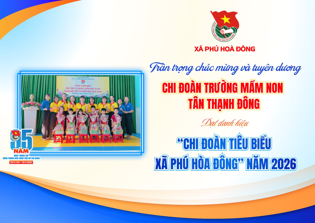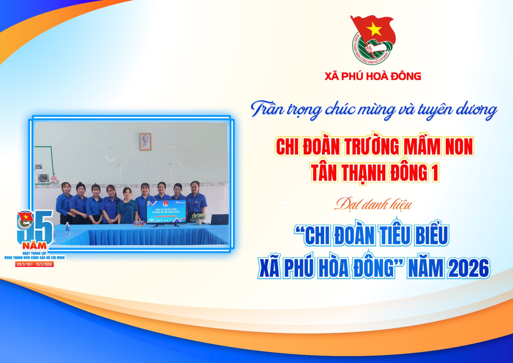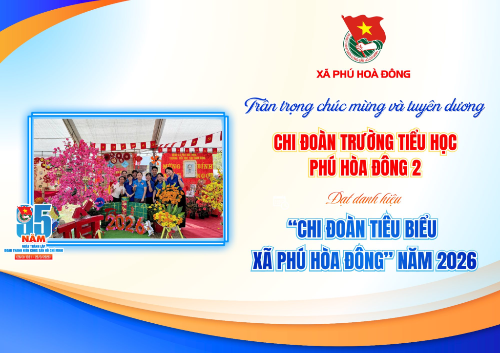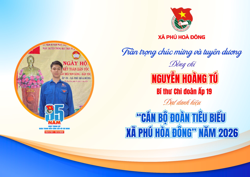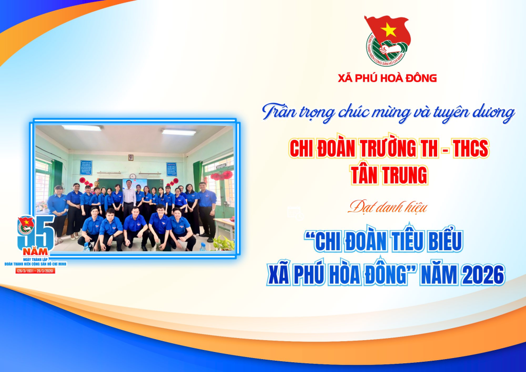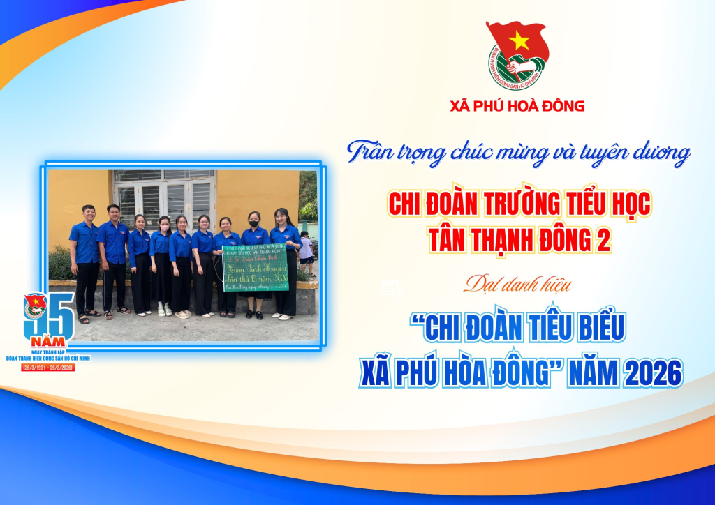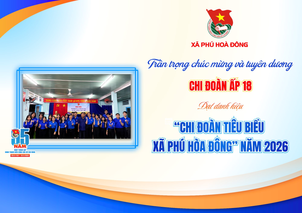 Ban Chấp hành Xã Đoàn Phú Hòa Đông trân trọng chúc mừng và tuyên dương 20 Chi đoàn tiêu biểu và 27 Cán bộ Đoàn tiêu biểu năm 2026.